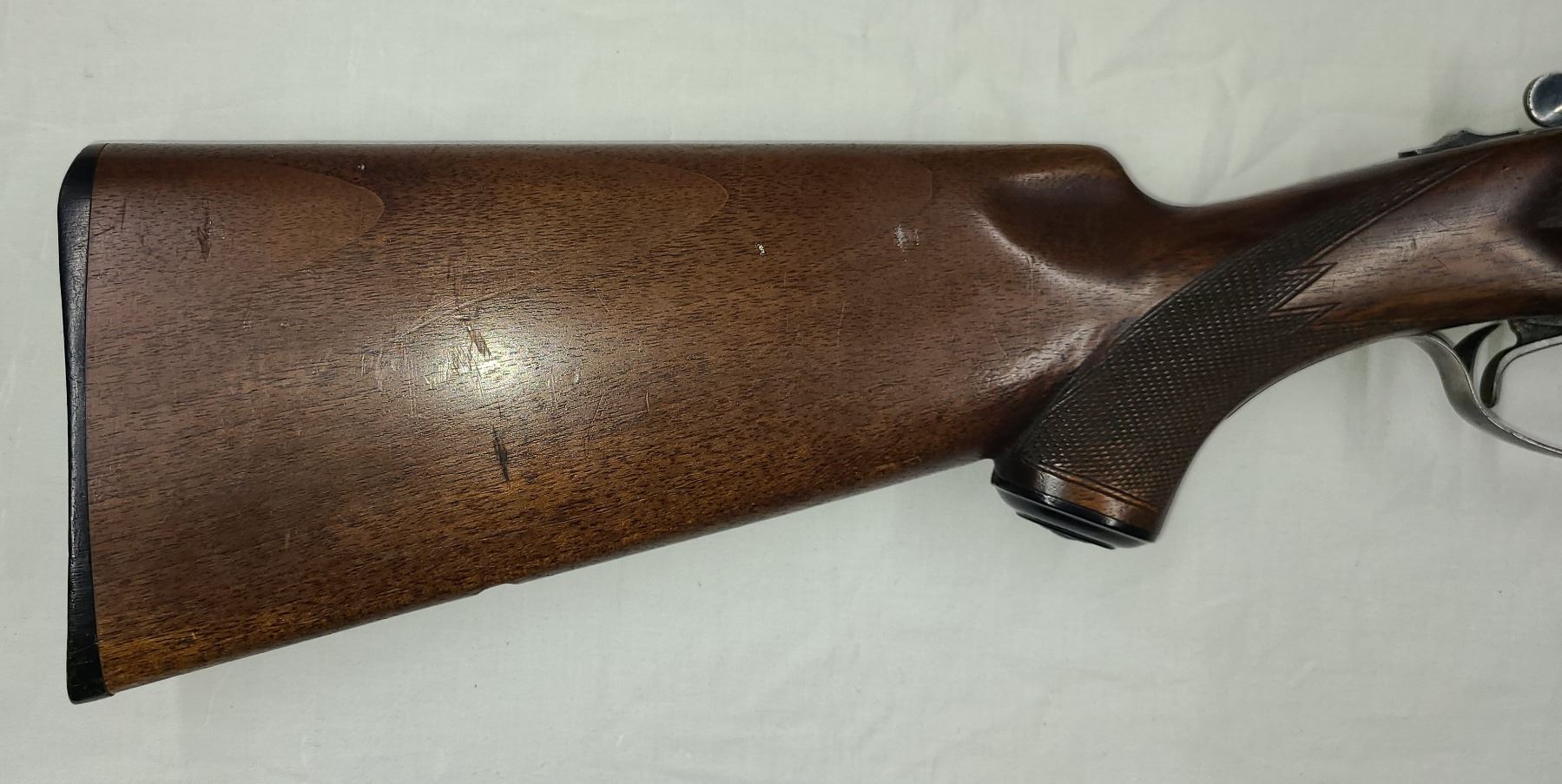 Walnut stock and forend with checkering - Rear stock has small dent right side.. Other than that