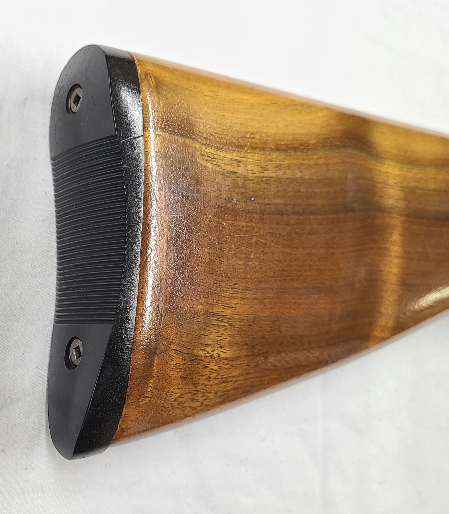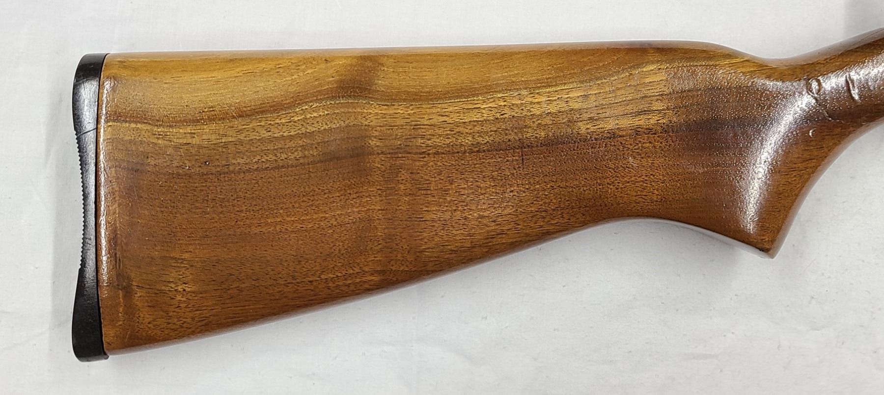 The wood has minor scratches and dents and appears refinished - Rear stock has a gloss coat but