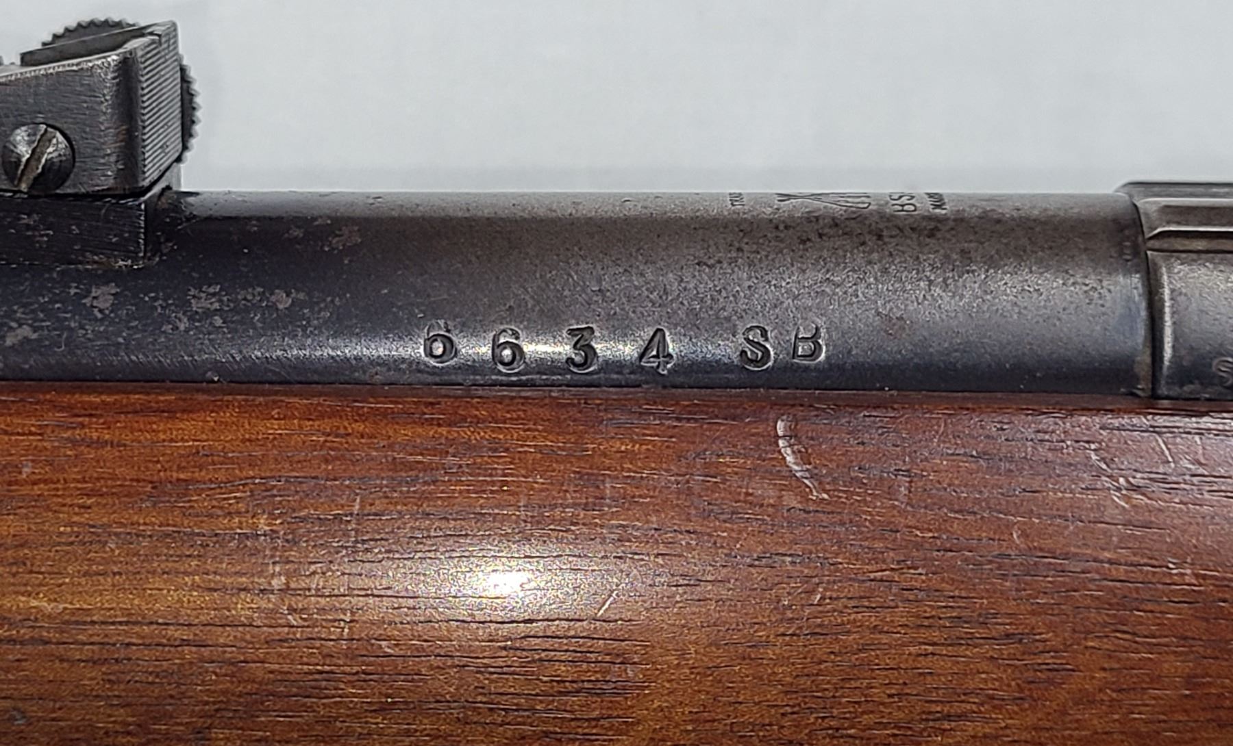 Has no rear sights. Has original leaf style front sight.