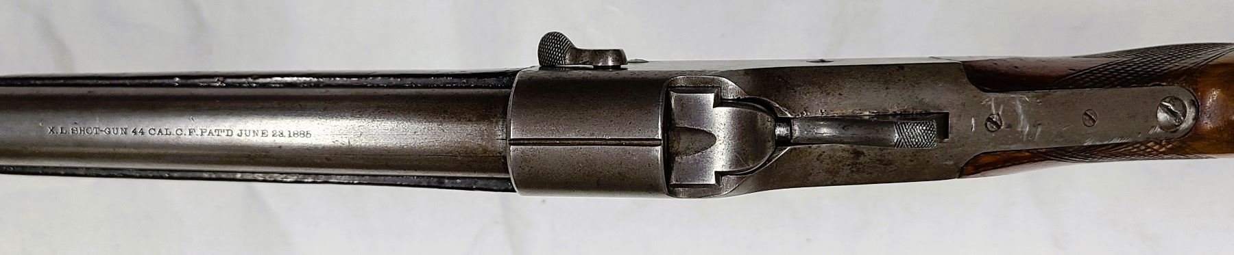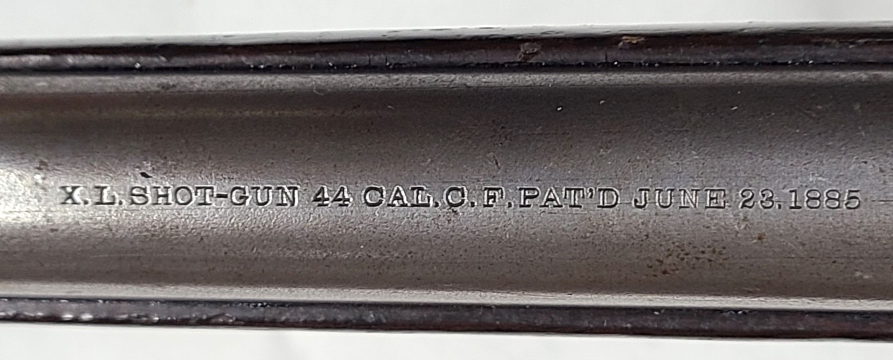 Top of the barrel is marked X.L. SHOTGUN 44 CAL.C.F.PAT'D JUNE 23.1885 - stamping is very clear.