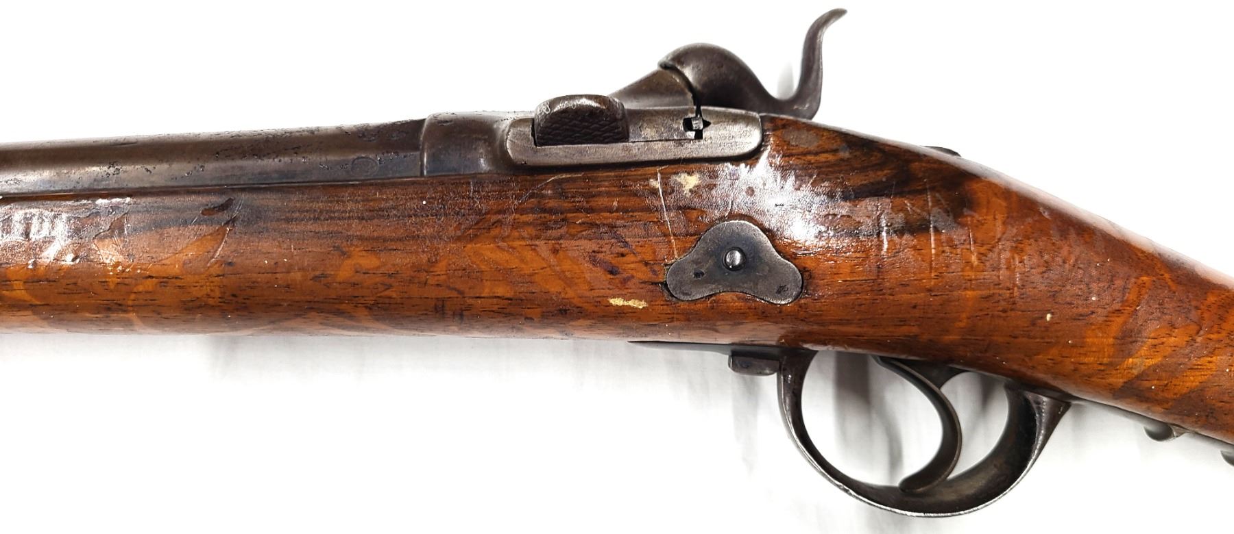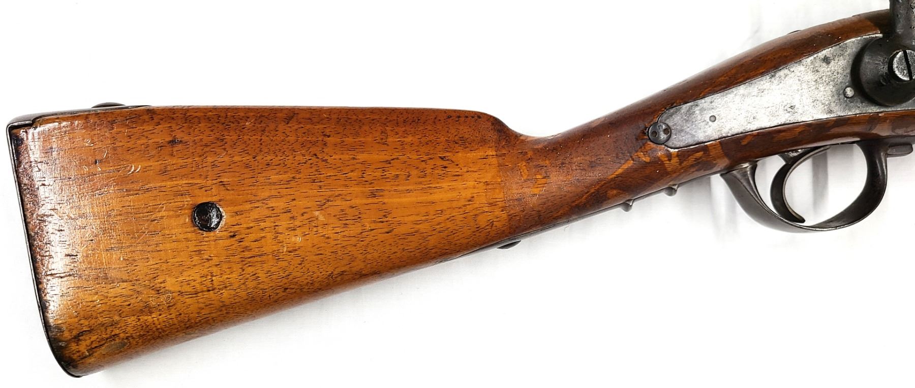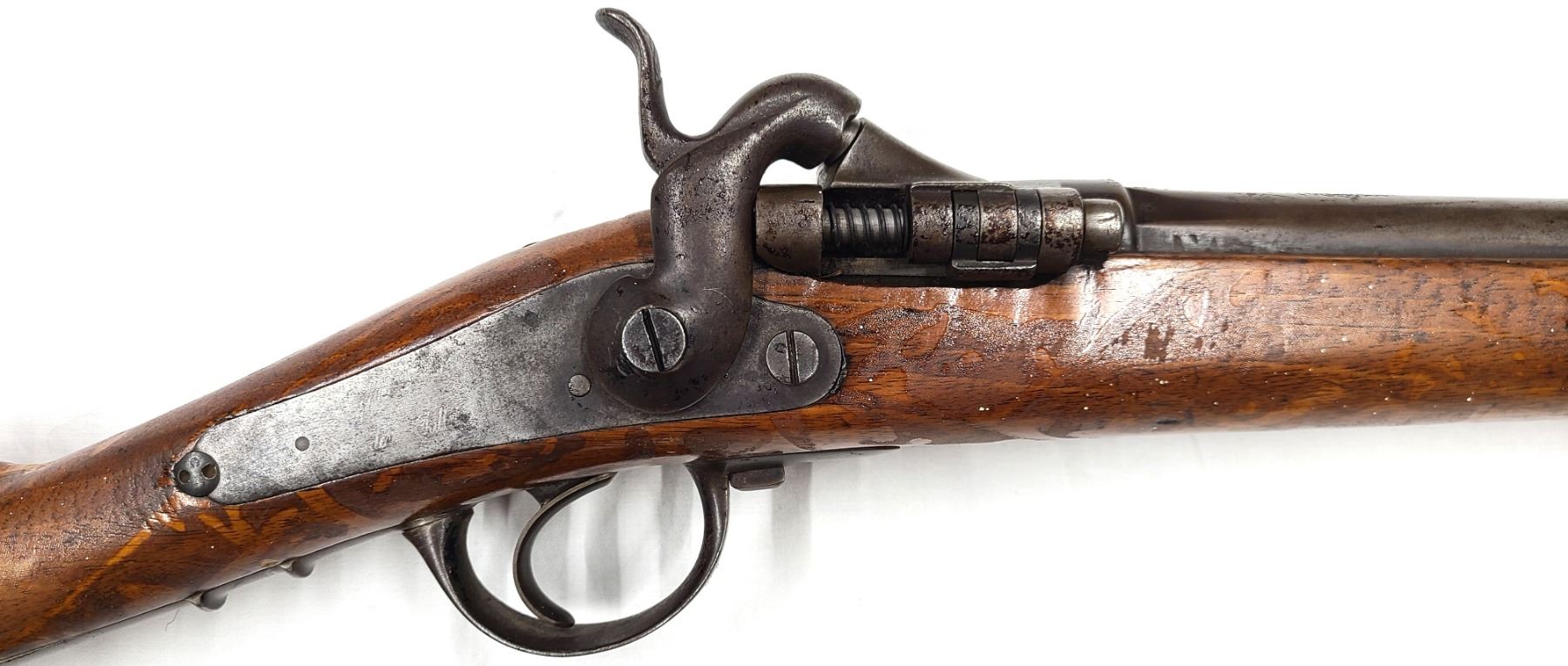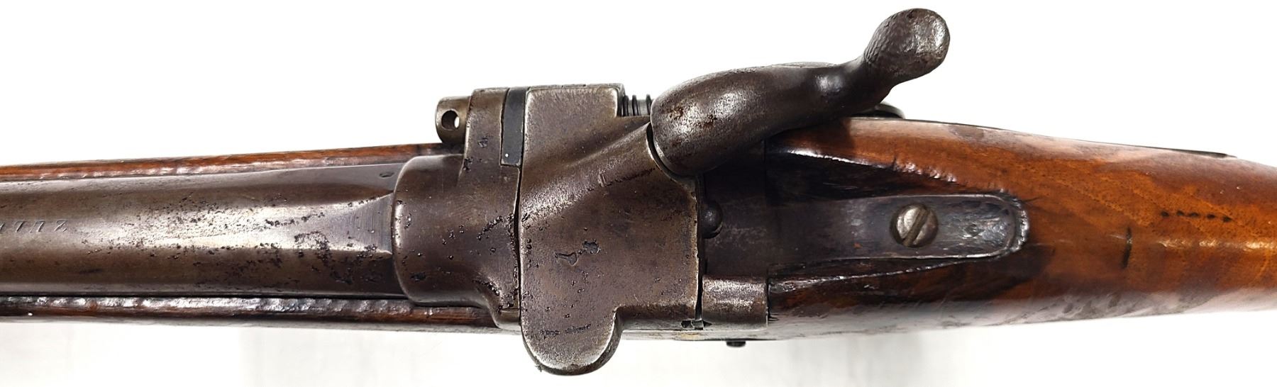 This specimen is a French Tabatiere System (nicknamed the Snuffbox) conversion of a percussion