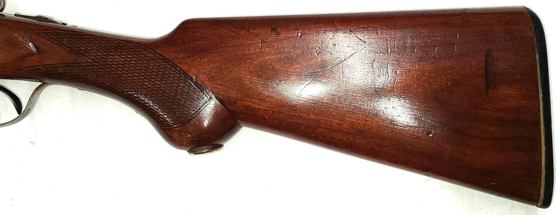 Bluing is gone from all the metal surfaces - Stocks have been refinished - there are a few tiniy cracks