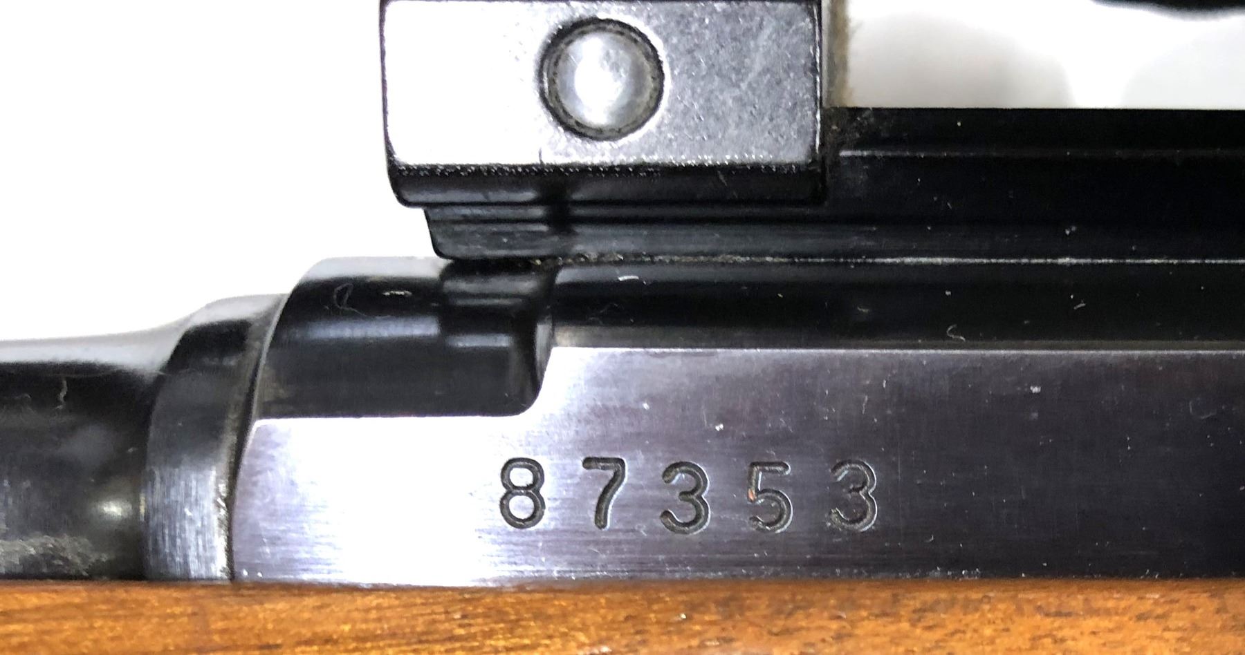 Comes with a Aim Master 2.5 x 20 Scope that is period correct and still quite clear,