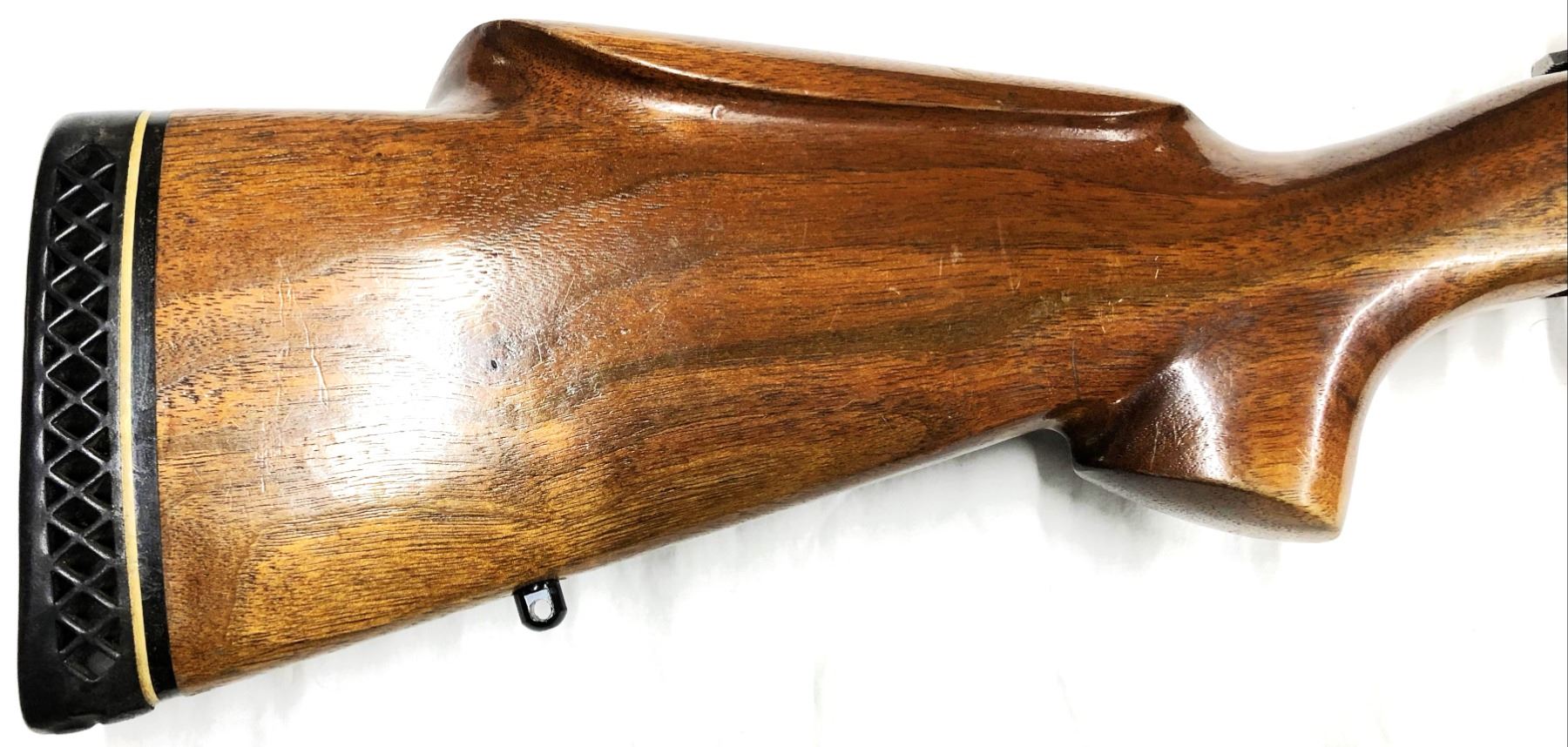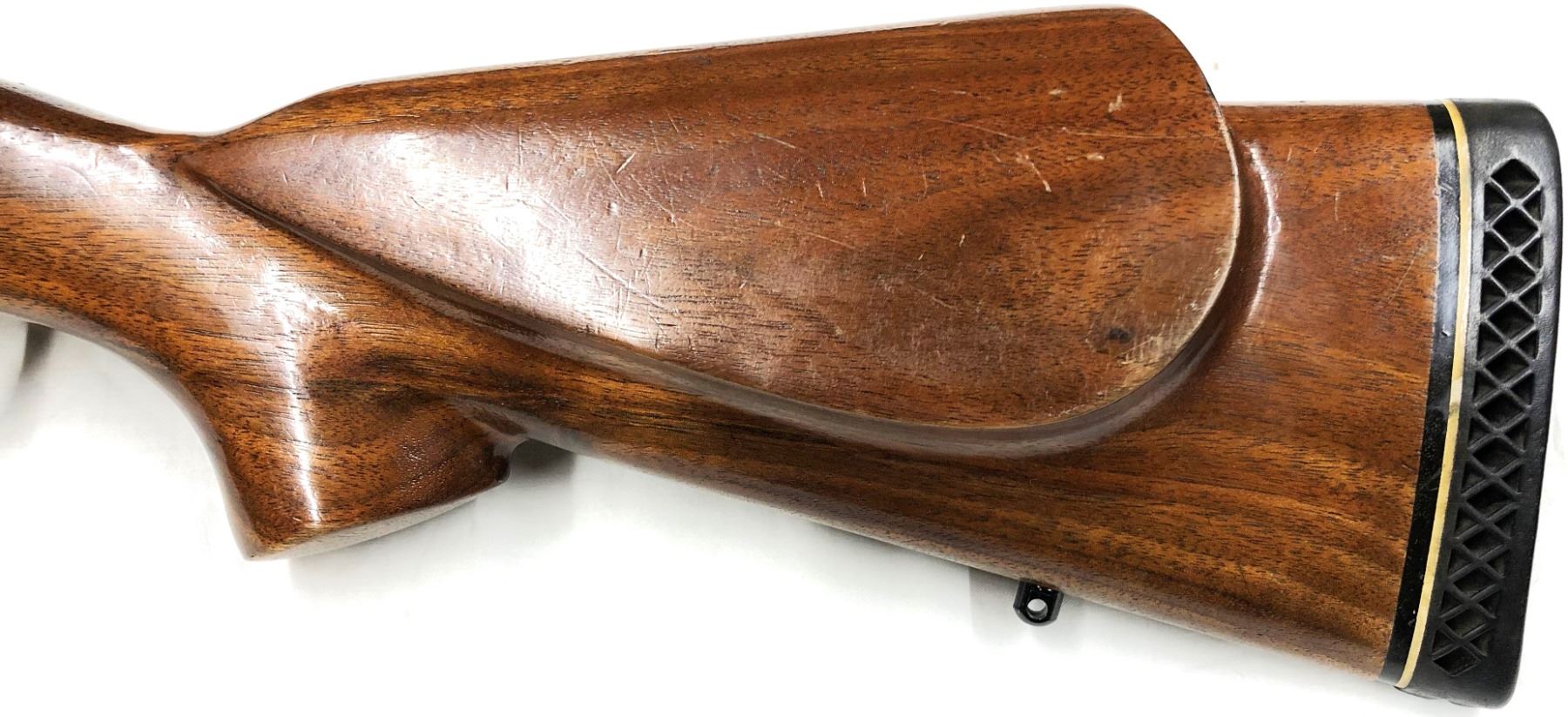 The walnut finely checkered Monte Carlo style stock with rubber White Line butt pad.