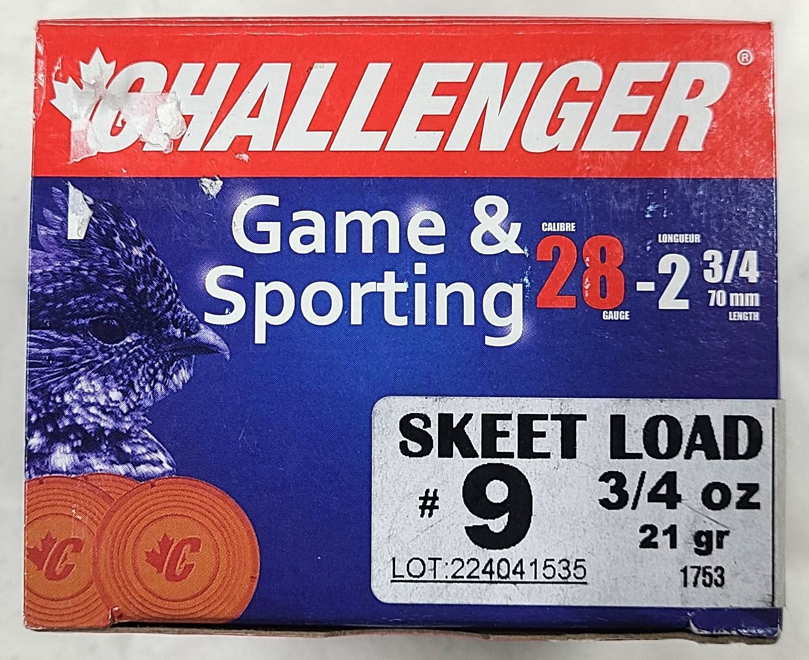 Lot 138 28 GAUGE Challenger No.9 Skeet Load - 25 Shells NIB