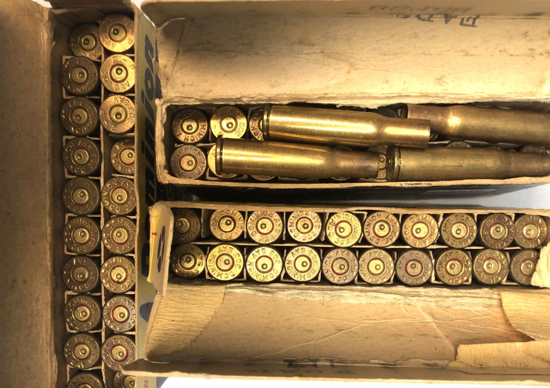 One box is printed as 300 Savage but inside is 303 Savage brass