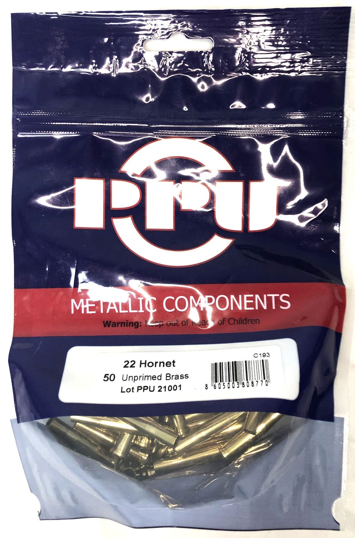 Sealed bag of 50 .22 Hornet umprimed brass casings
