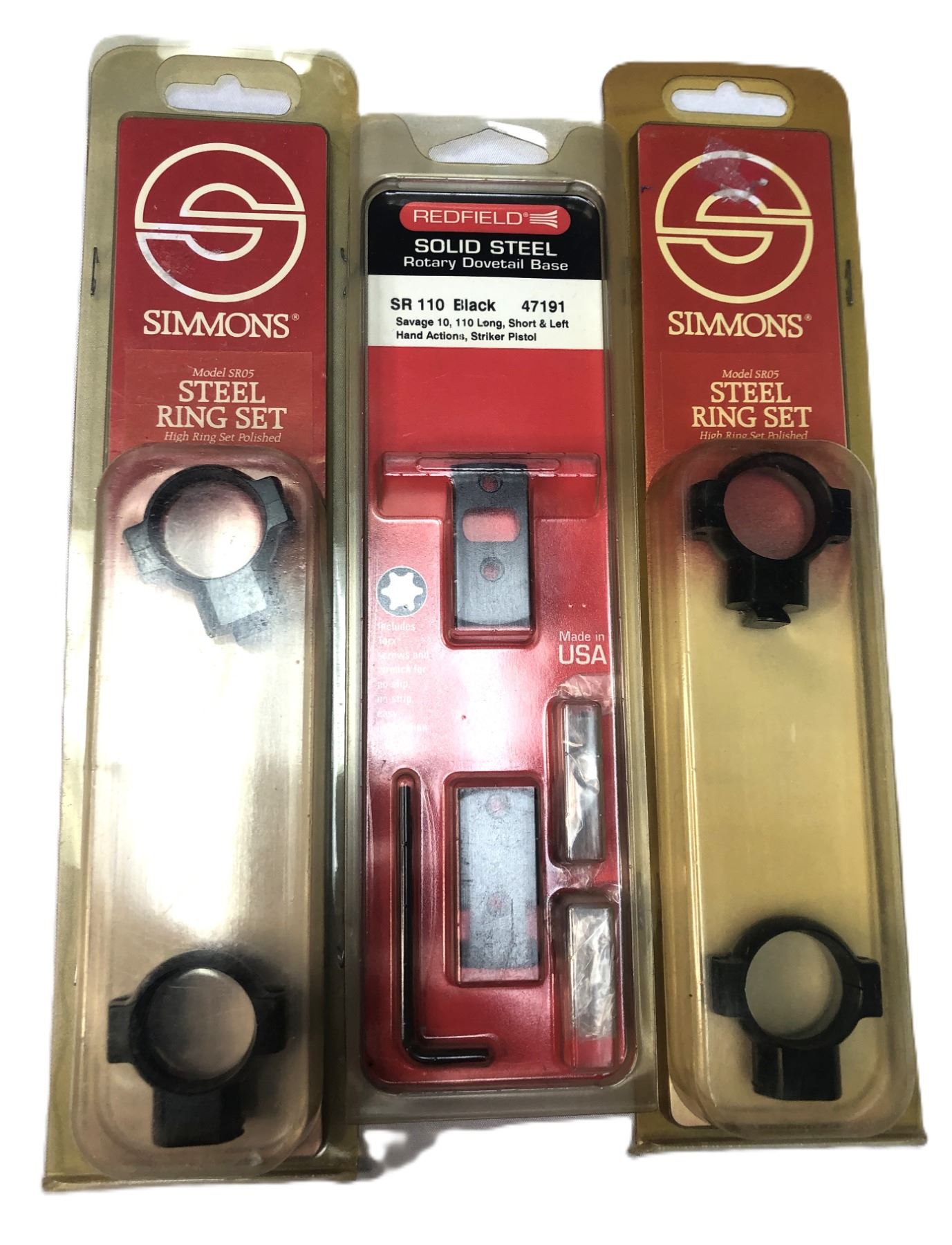 2 sets of Simmons scope rings and a Redfield solid steel base