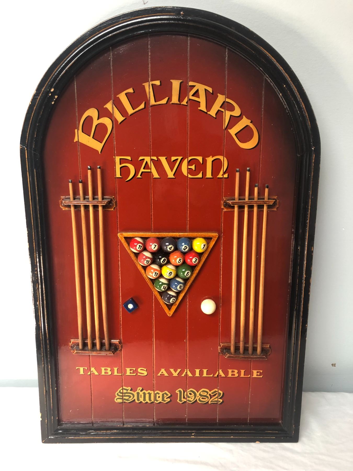 Wooden Billard Haven sign with raised features - Nice feature of Cues and Billiard Balls raised in