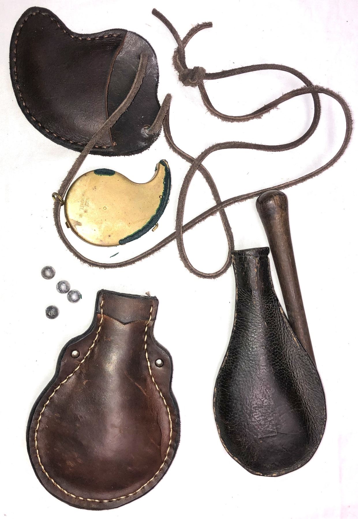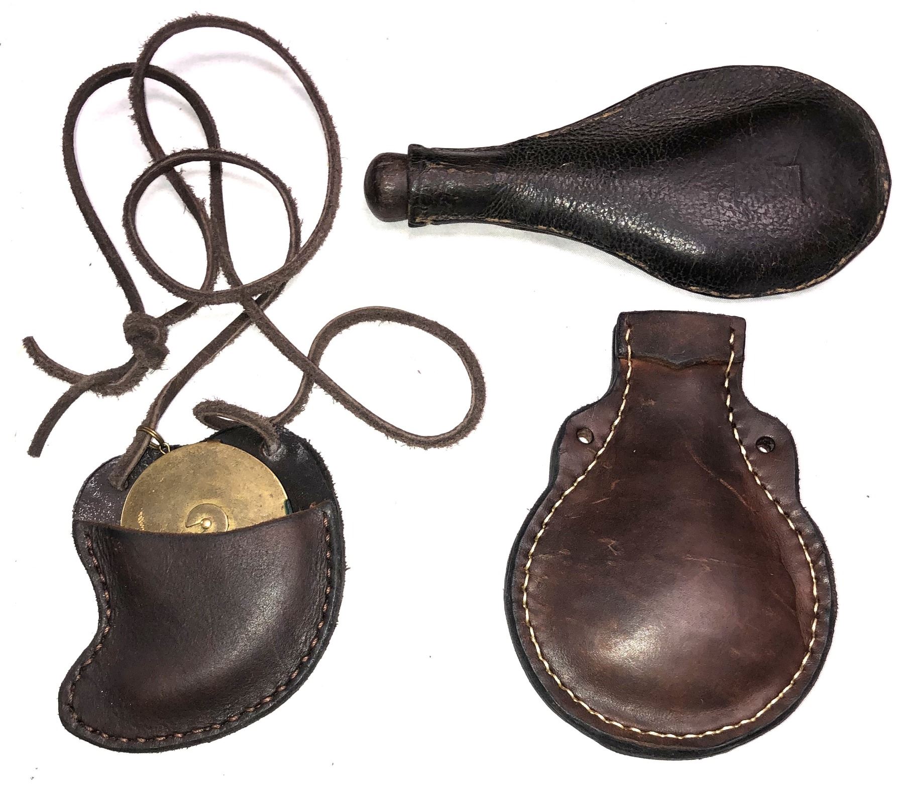 Lot 1218 Leather Powder Flask & Pouches