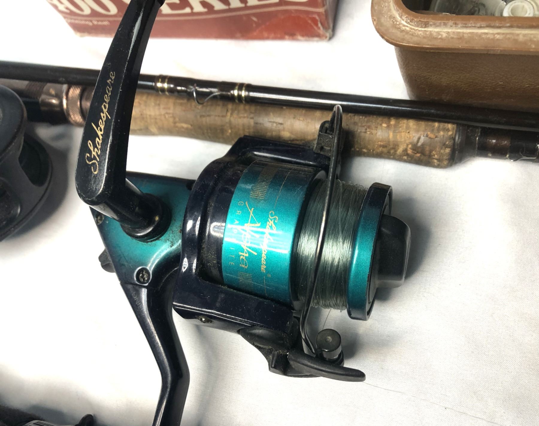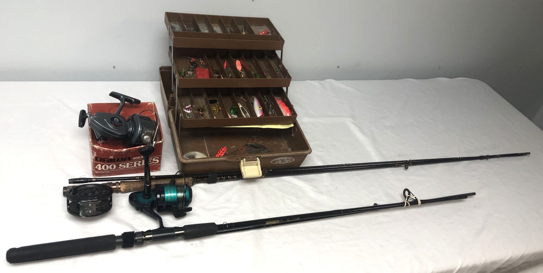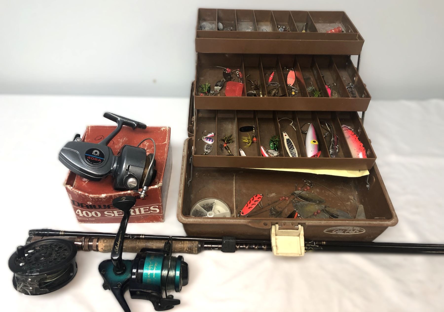 Includes 2 rods, 3 reels, tackle box and supplies inside of it