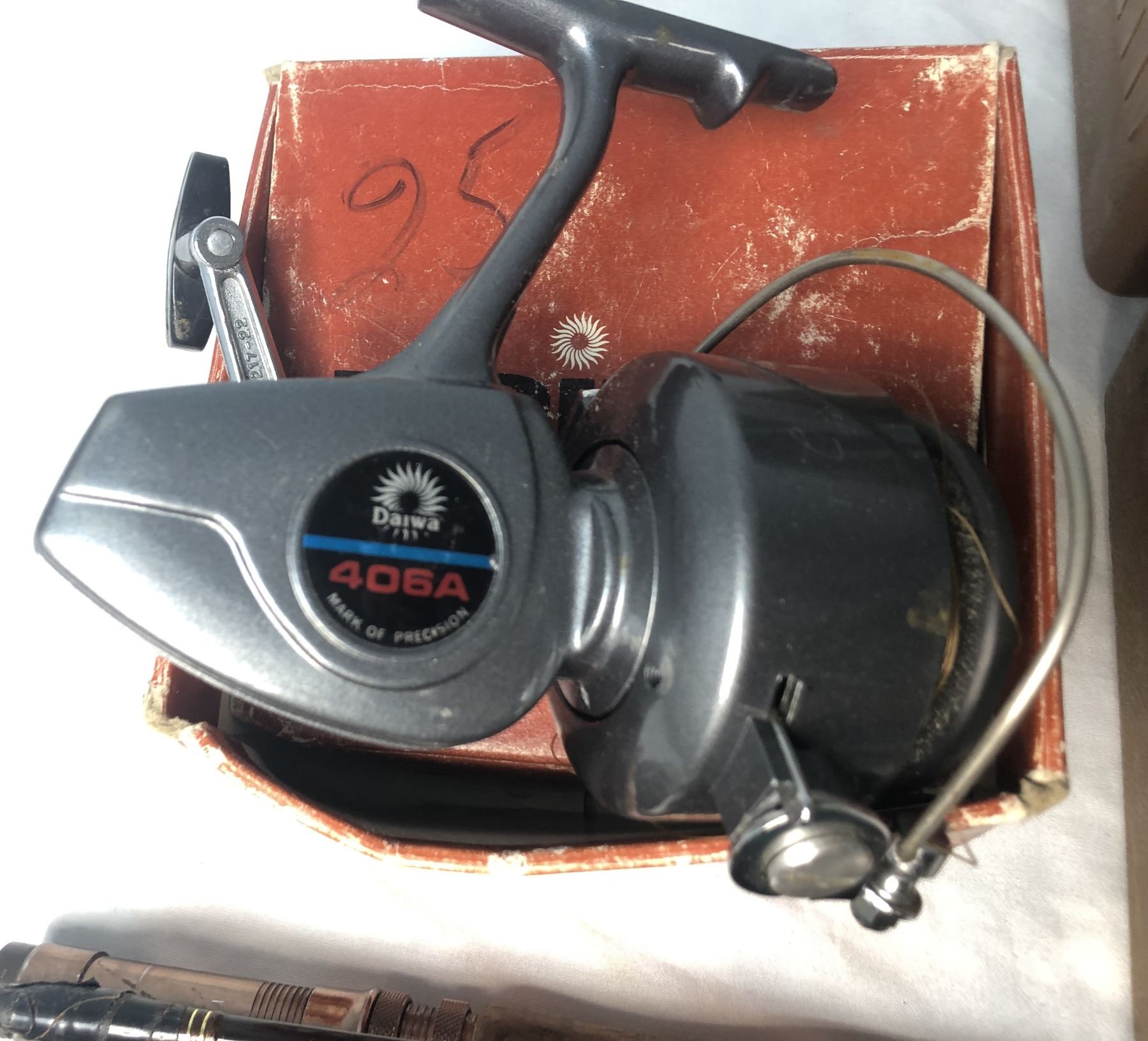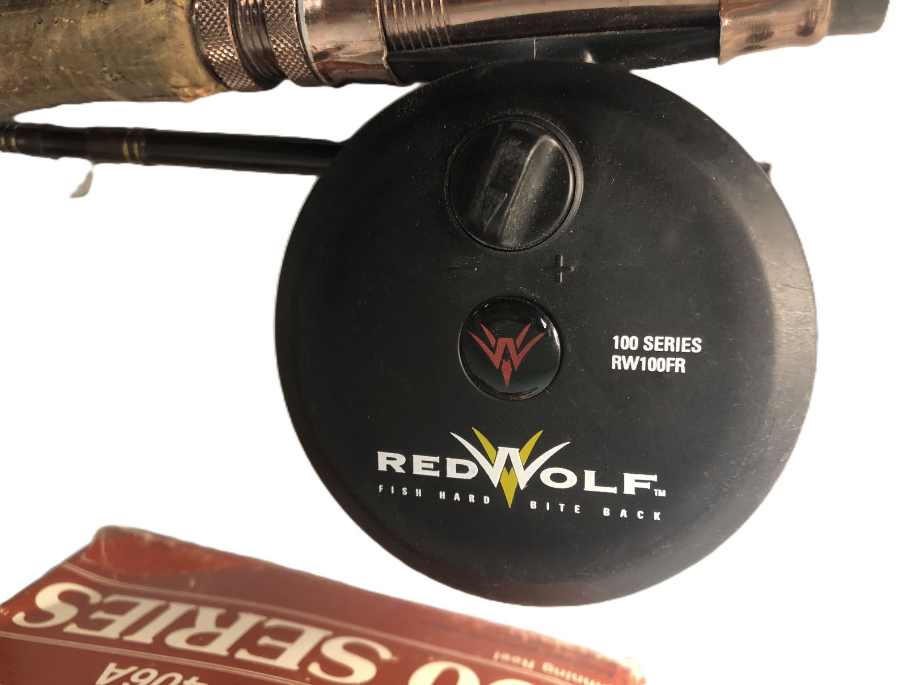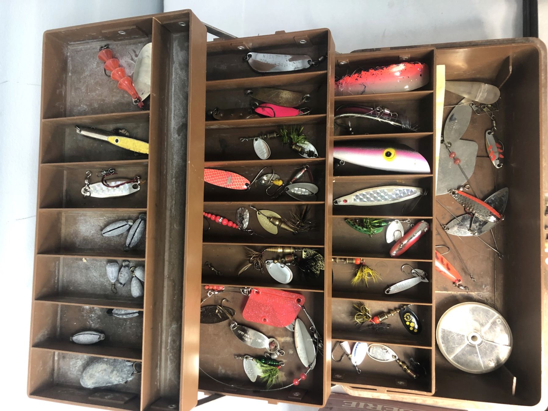 Includes 2 rods, 3 reels, tackle box and supplies inside of it