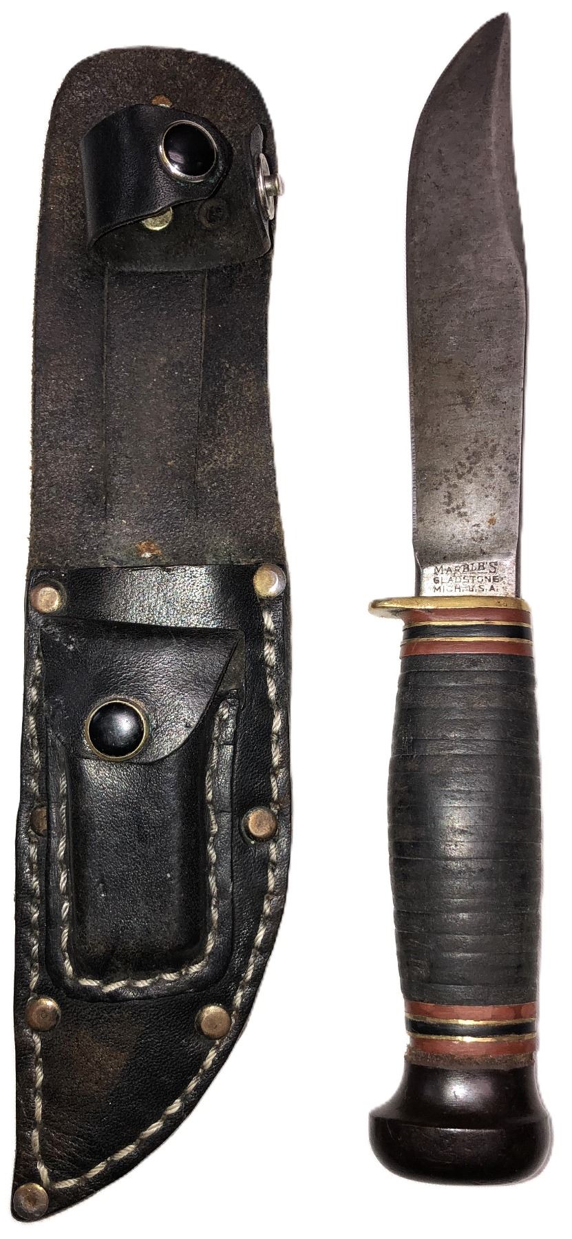 Marbles vintage collectible hunting knife with black leather sheath
