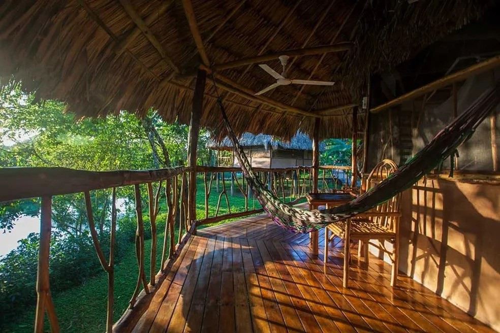 Step into the world of the Maya and explore untouched rivers and jungles for a once in a lifetime experience. Tour the rainforest and awaken your senses to the sounds of exotic birds and wildlife. Fish the flats and remote jungle rivers for snook, permit, and tarpon. Rope swing from trees along the Moho River, kayak in the jungle, or maybe visit the many Mayan ruins in the area. Take a 30-foot jump from a waterfall or learn the history of the cacao tree and its journey to chocolate on a cacao tour. Visit the small town of Punta Gorda on market day and see the vast array of local fruits, vegetables and fish. The lodge is remote, private, and totally off grid, using solar power to run all cabanas with a total occupancy of 20 people. We raise fresh crops, harvest local wild fruits, and even tend our own flocks of chicken and goats. Your cabanas are nested 16 feet above the ground and perched along the slow-moving Moho River. After you have enjoyed an evening gourmet meal prepared by our chef, fall asleep to the sounds of the howler monkeys and the sounds of the jungle. This and more awaits you