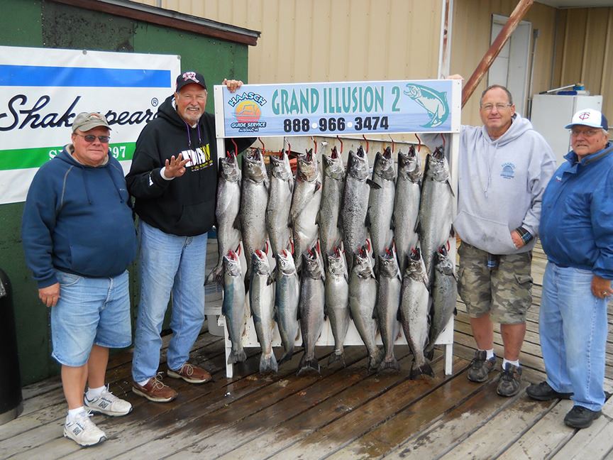 1/2 Day (5 hour) Fishing Charter for Salmon and Lake Trout on Lake Michigan for 4 anglers with Captain Lee Haasch. With over 45 years of fishing experience Captain Lee and his crew will offer you a full-service charter, which means they supply all the equipment needed to catch the big ones!