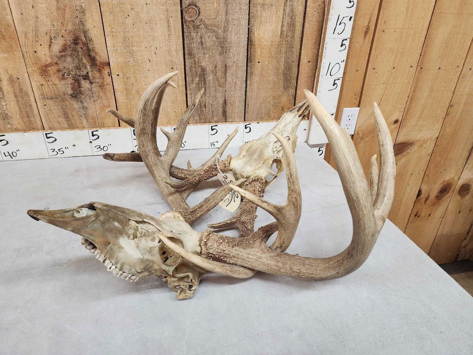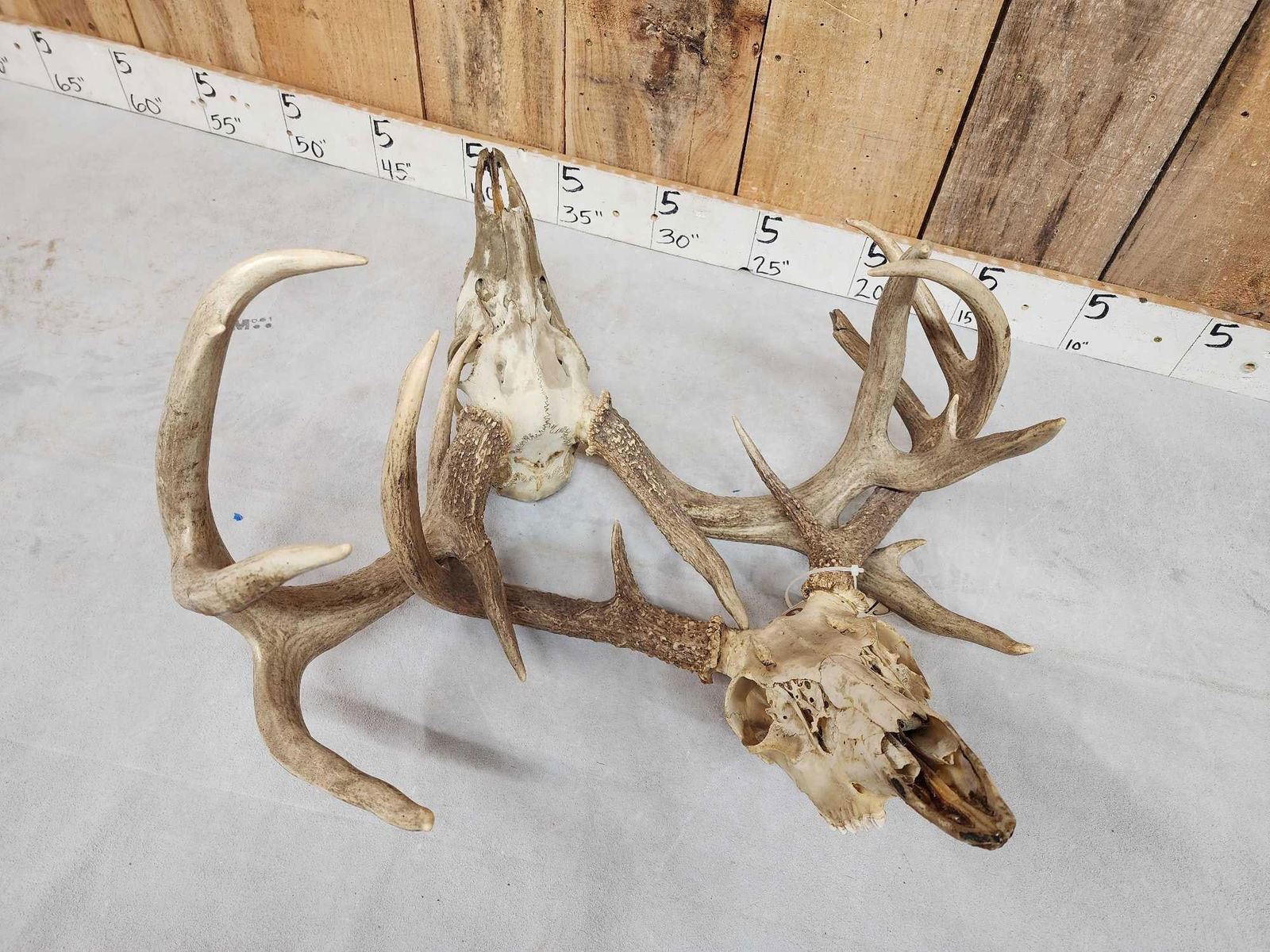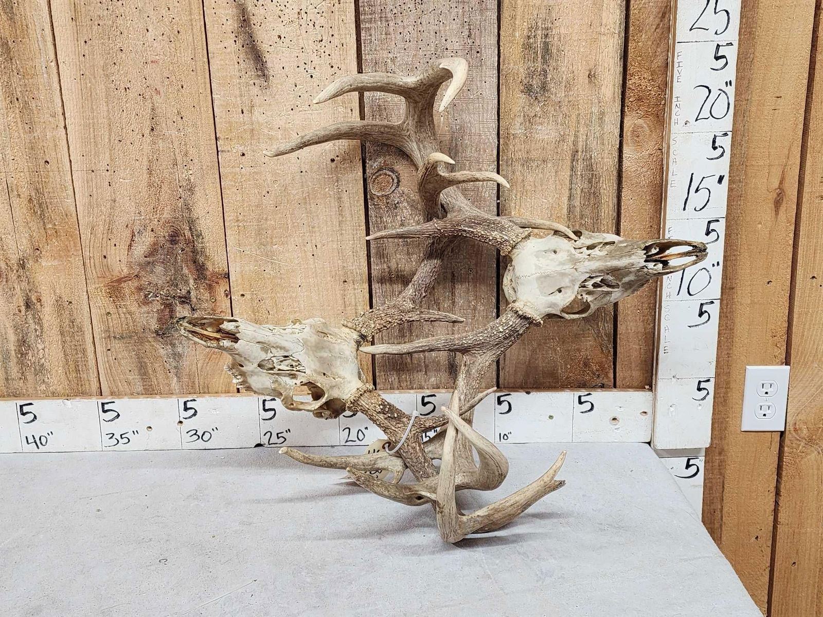 Lot 31C 2 Big Sets Of Locked Whitetail Antlers On Skulls