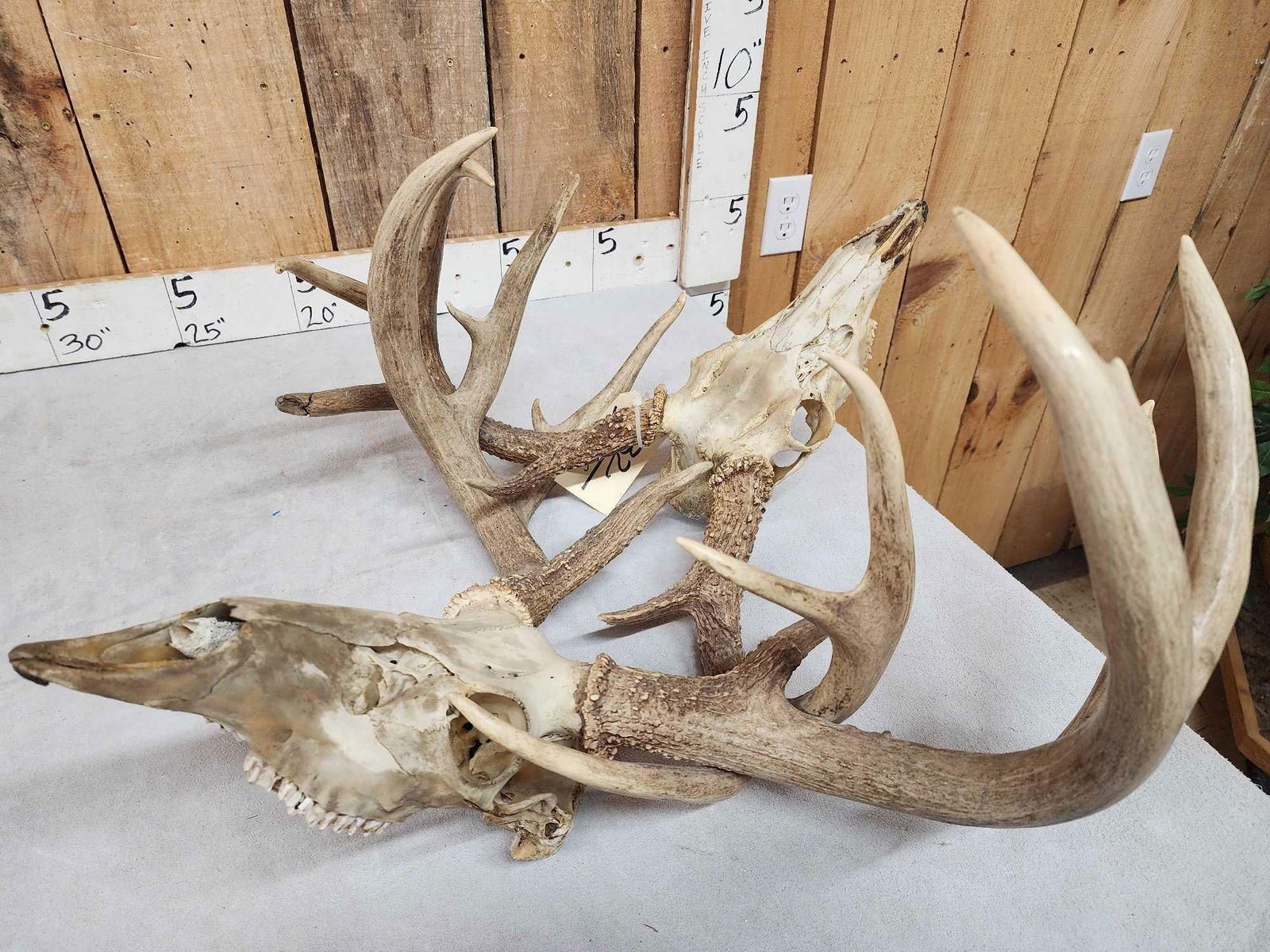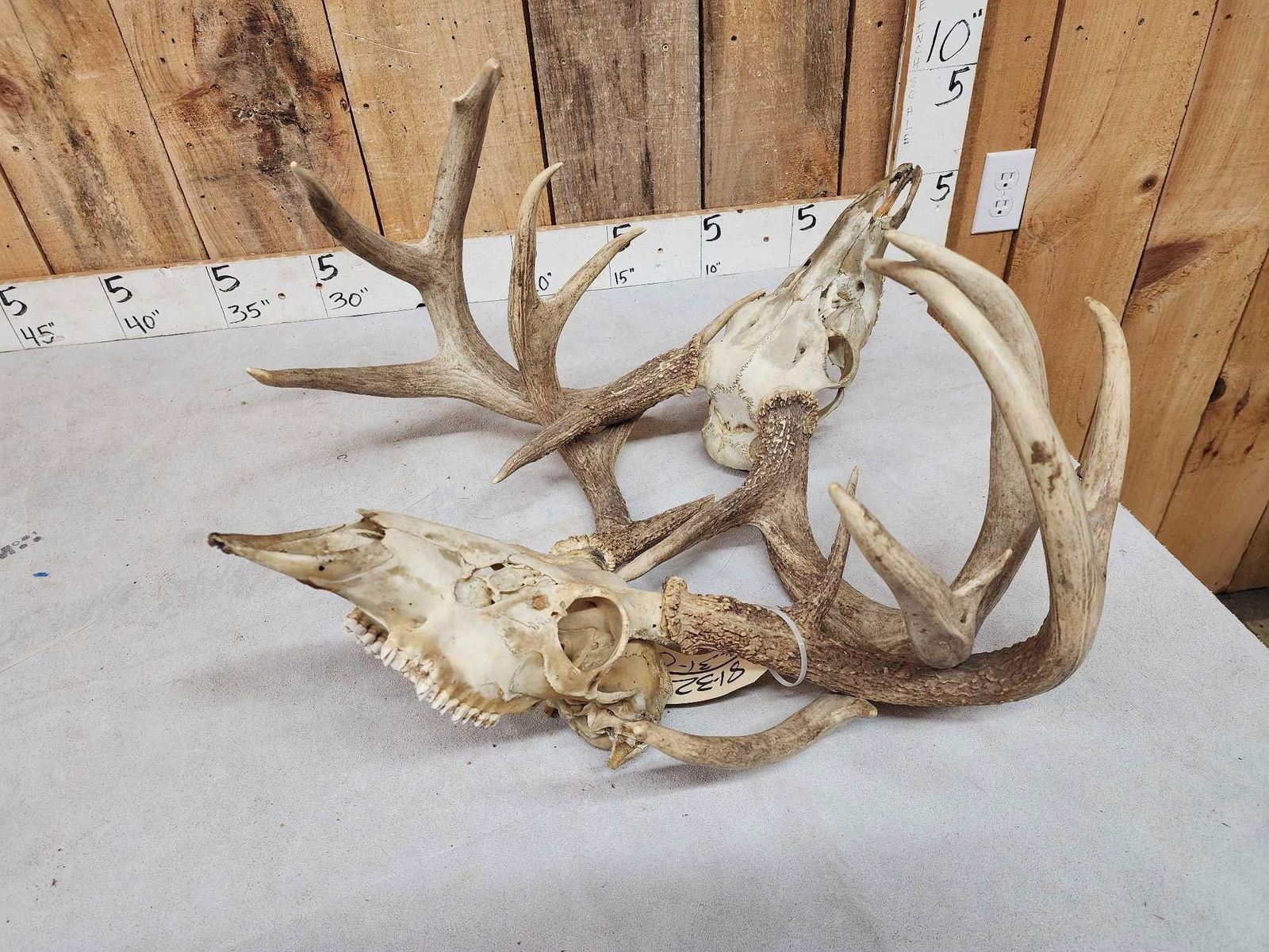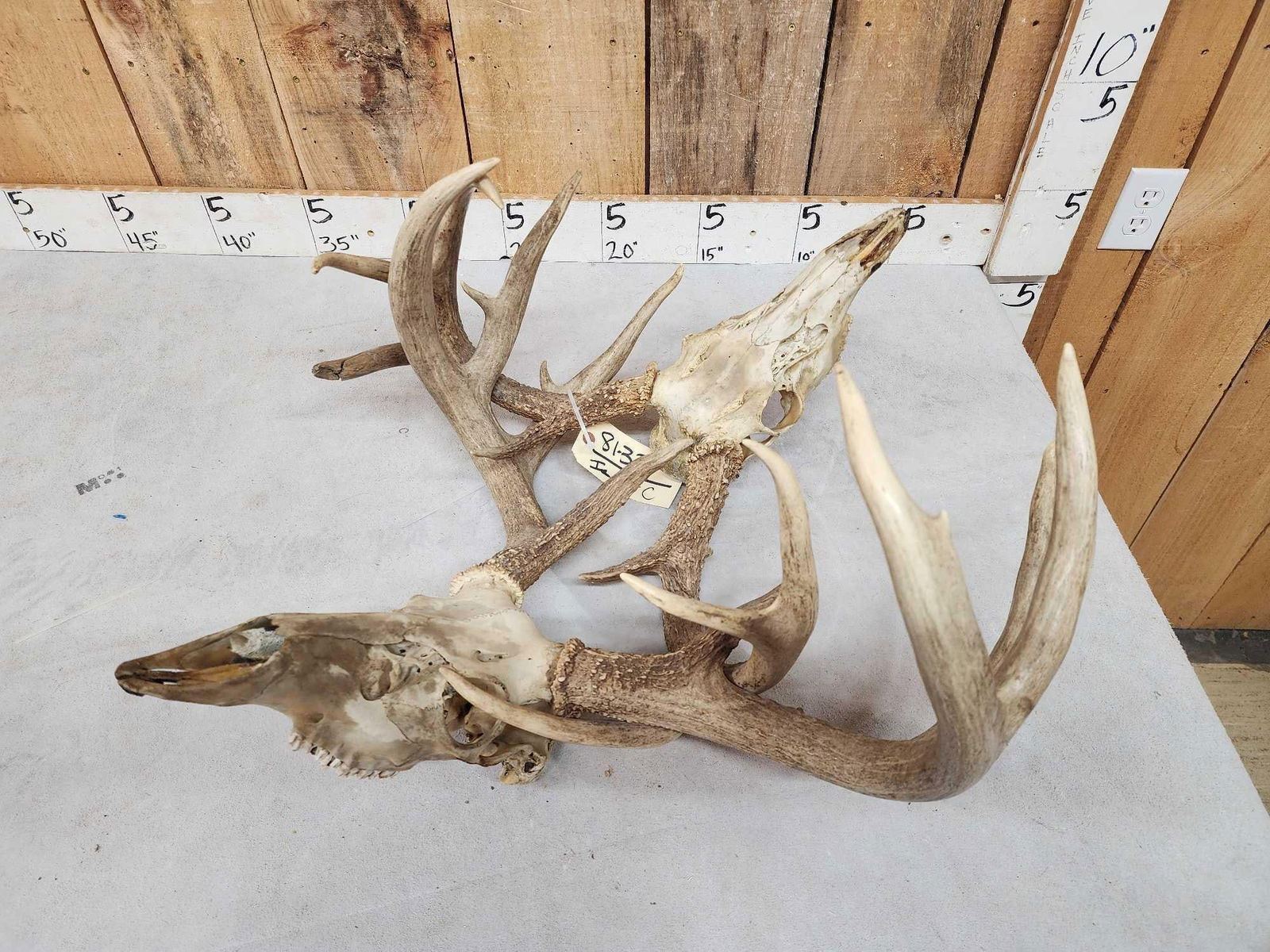 Lot 31C 2 Big Sets Of Locked Whitetail Antlers On Skulls