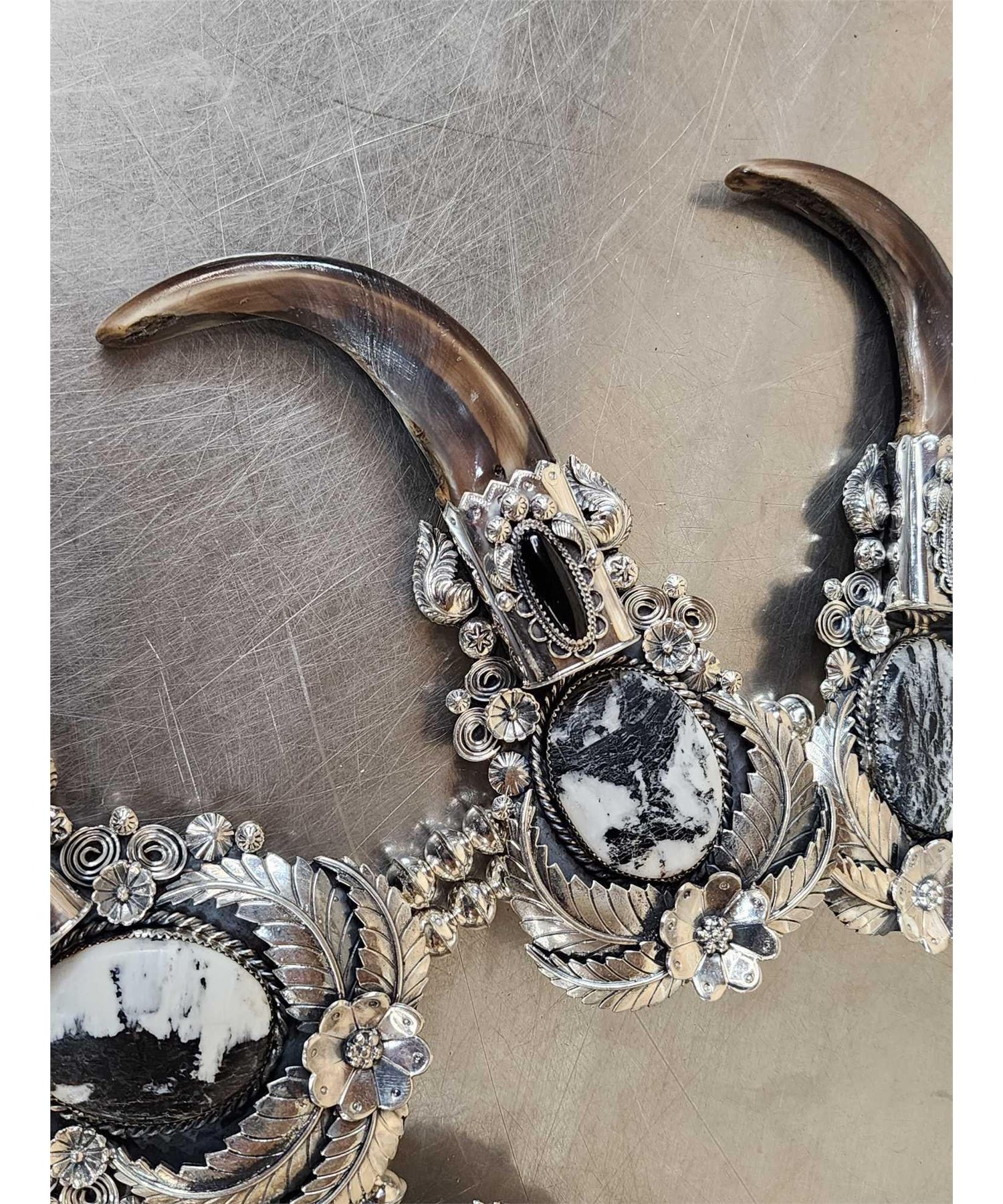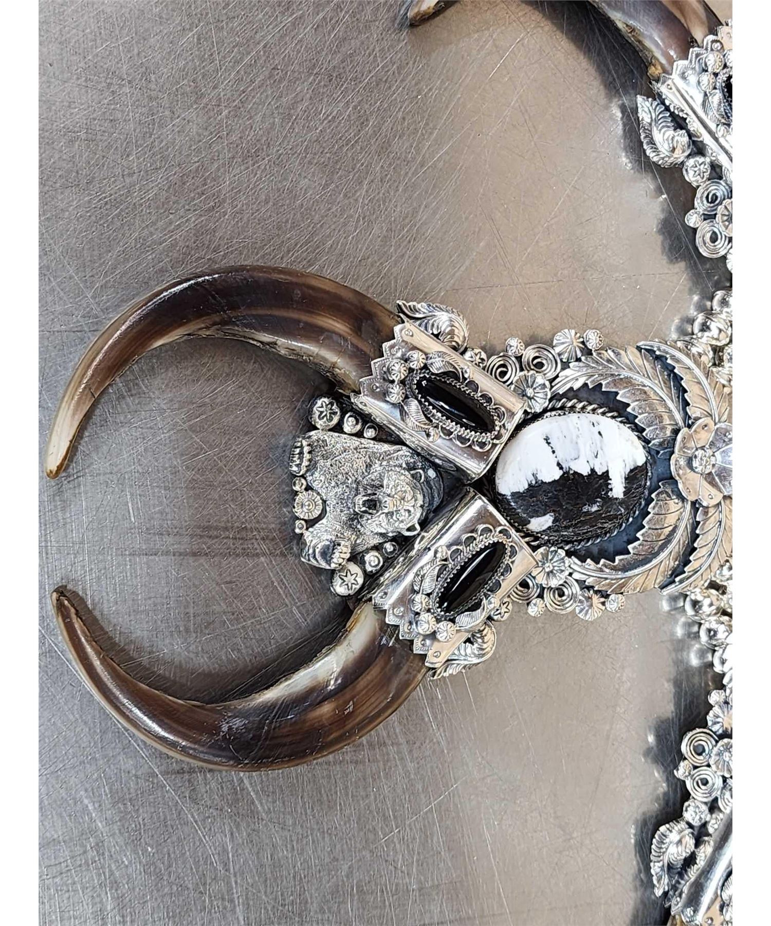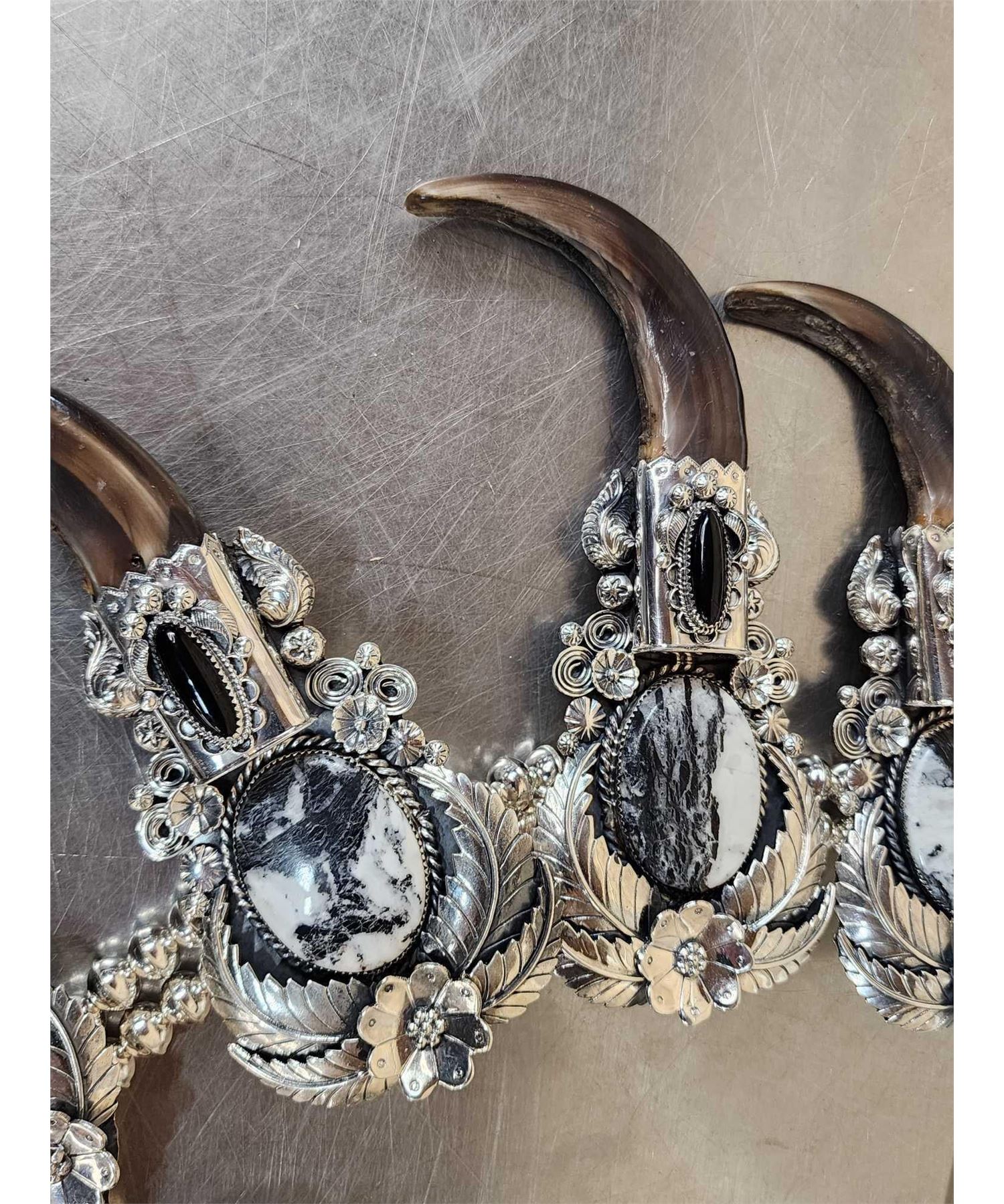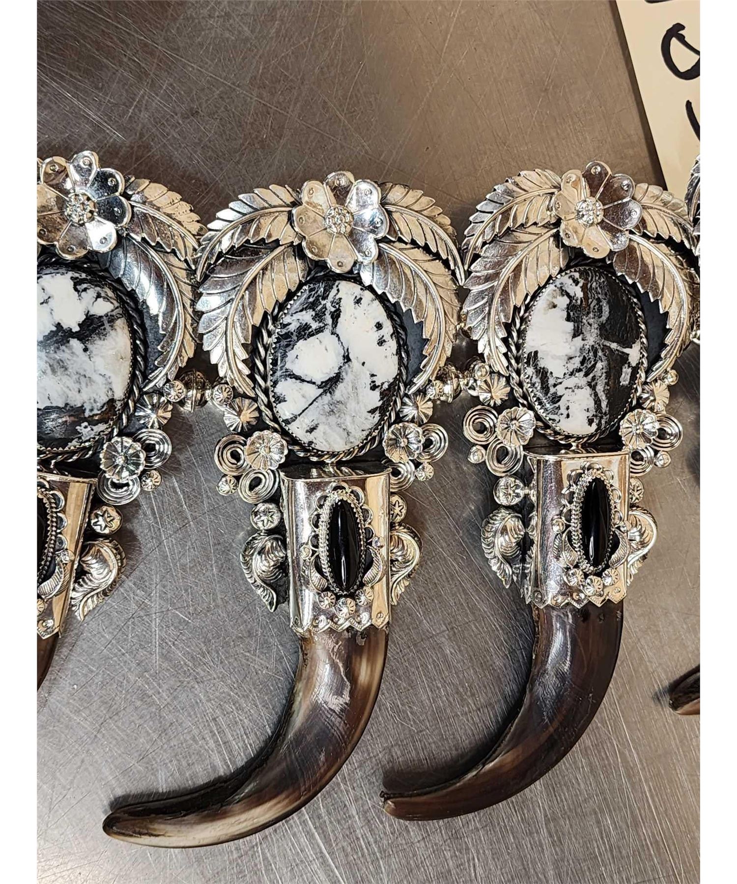 35.81 Unbelievable craftsmanship by NOW RETIRED artist Kenny Ray McNeilly Jr .We had the pleasure of talking with Kenny directly he indicated that there are VERY few piece of his artwork available for sale in his gallery there will be no more produced ! This true piece of art weighs 2.8 Lbs the weight is predominantly silver .Decorated with 10 Huge Alaskan Grizzly Bear Claws polished to a high sheen along with White Buffalo Turquoise Black Onyx stones .Take advantage of this opportunity to invest in this world class artwork for your collection!