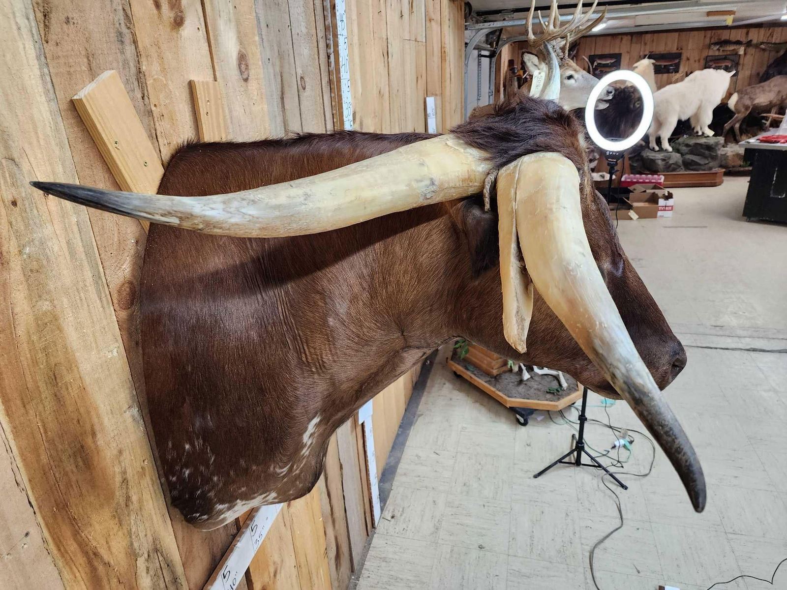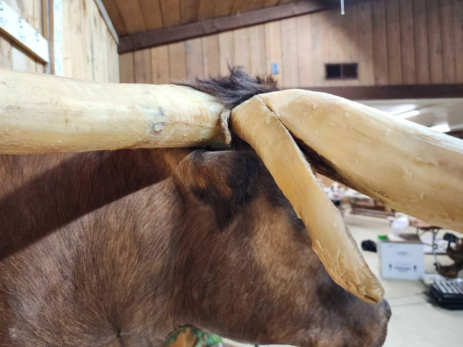 75.11 If you're looking for a very unique mount look no further! This is NOT a side show Gaff its the real thing ! In over 25 years of selling Taxidermy at auction we have never seen anything like it ! The horns are solid probably using most of the skull in the Taxidermy process Excellent Taxidermy Artwork on this truly one of a kind Longhorn Steer! Awesome Oddities Curiosity piece!