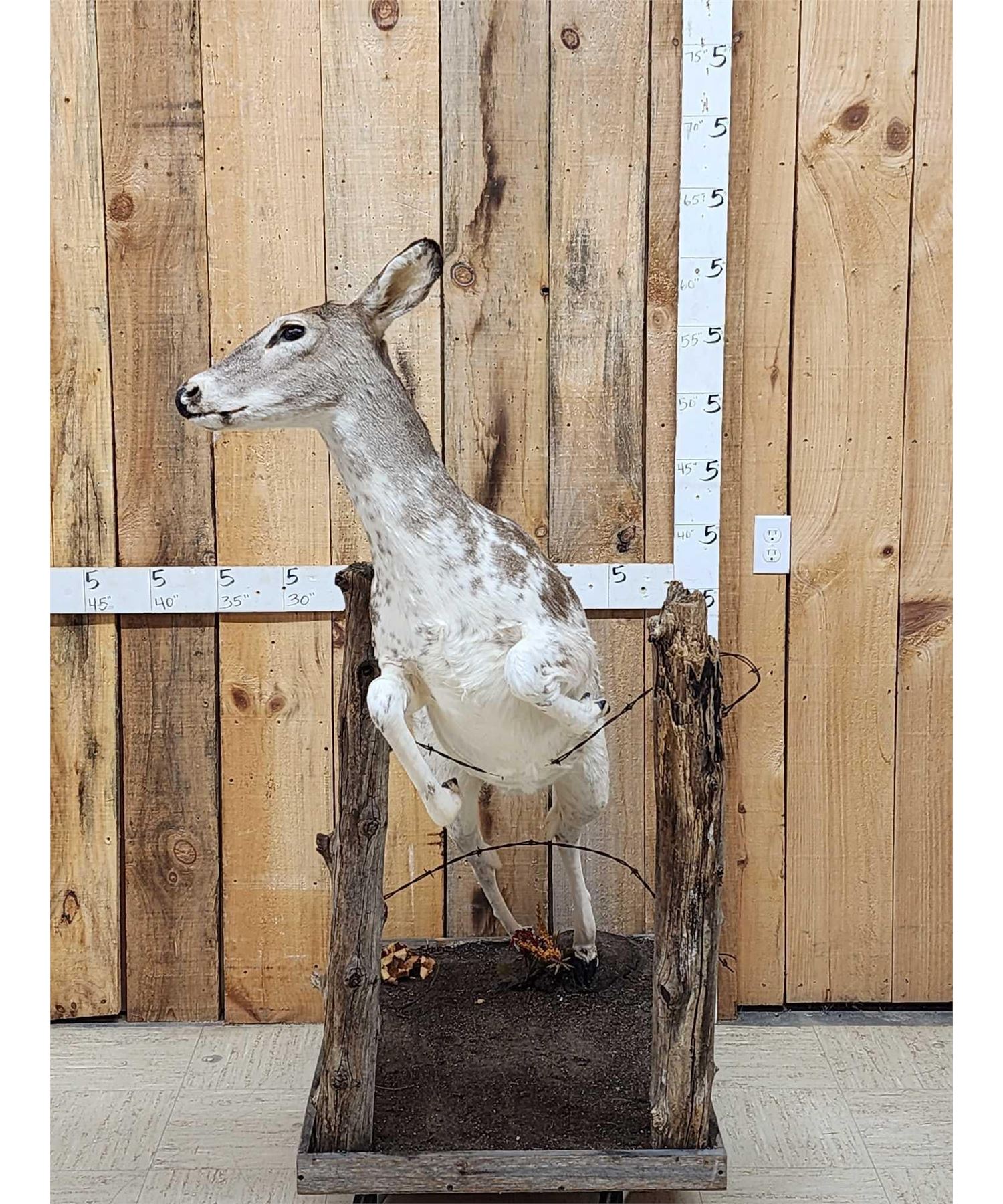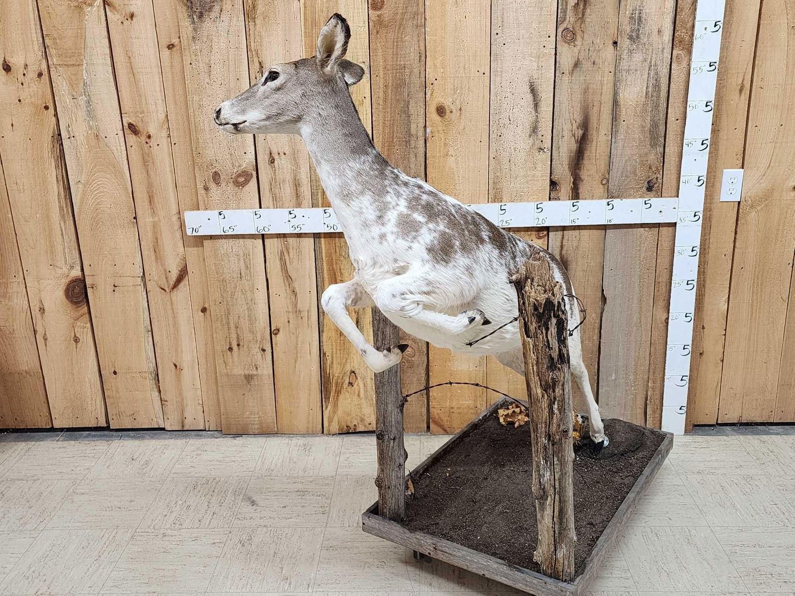 Lot 52A Piebald Whitetail Doe Jumping A Fence Full Body Taxidermy Mount