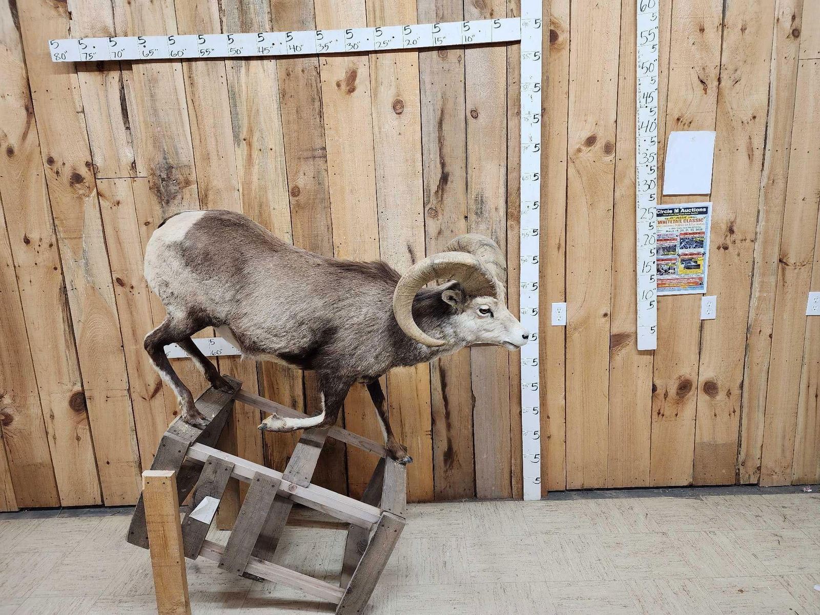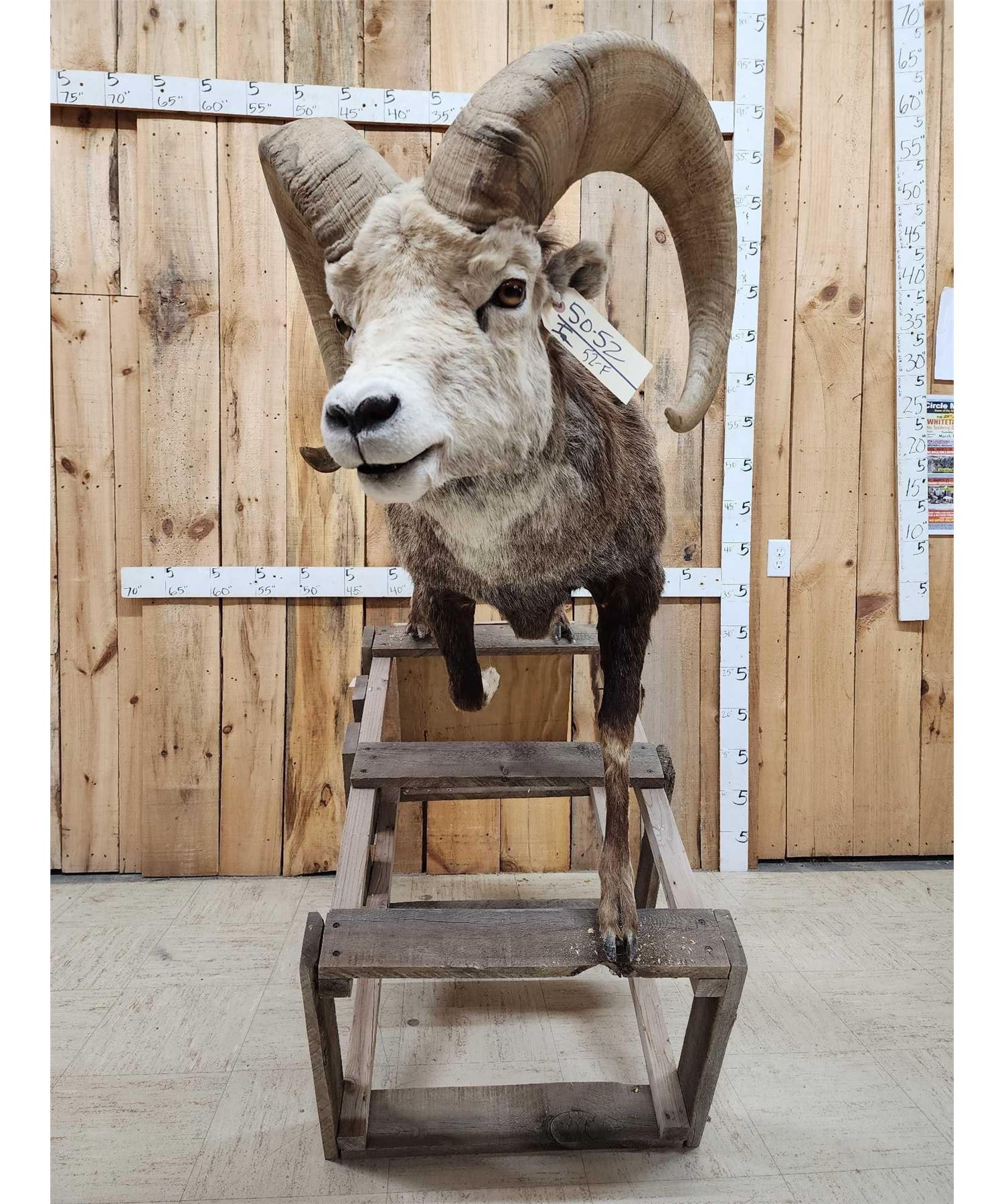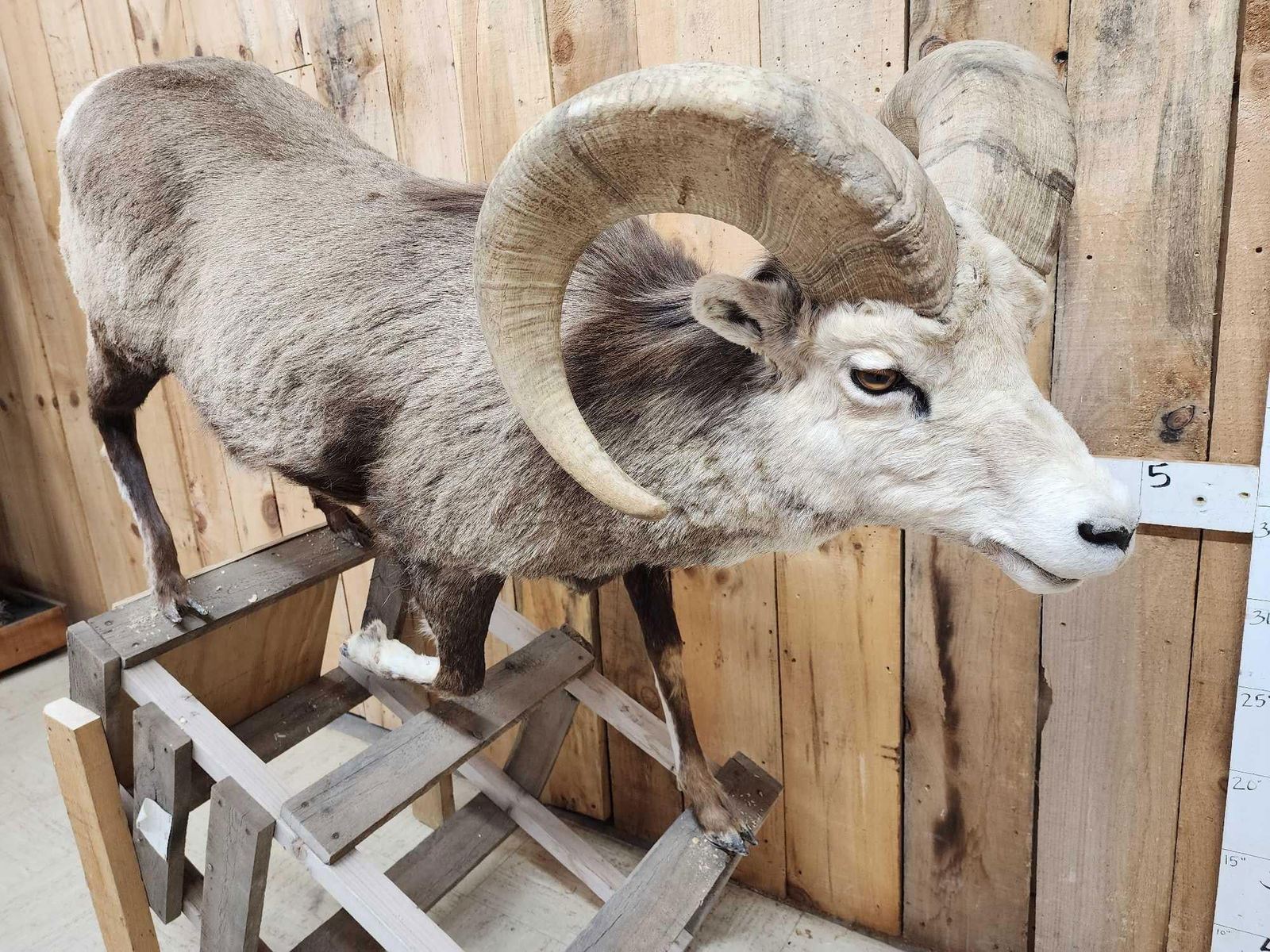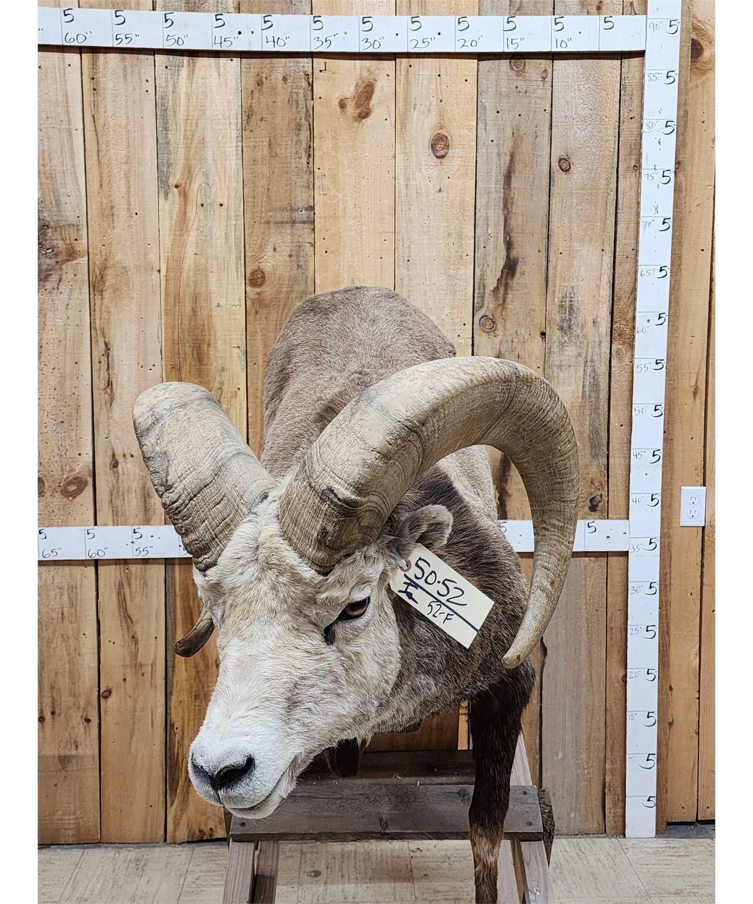 50.52 Good color big horns Right horn length about 34 1/8" with a 14" base Left about 34 3/8" with a 14" base on a temporary base bolt him down anywhere in your displayStone Sheep Hunts Cost between $75,000 - $120,000 Take advantage of this opportunity to add this one to your collection for a fraction of the cost !