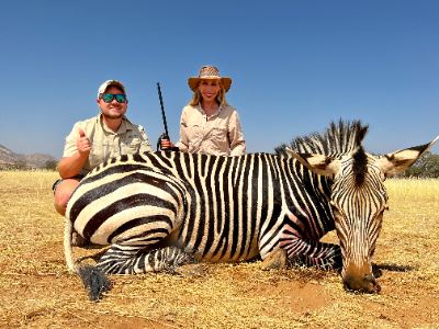 Hunt Namibia's largest contiguous conservancy, the vast Kaokoland wilderness on the western border of Etosha Park, on this 7-day, 1x1 guided safari for Hartmann's (mountain) Zebra, Giraffe and Springbok. Donated by Jamy Traut Hunting Safaris, method of take is either rifle or bow. Schedule hunt with the professional hunter for open dates in 2026. No alternative dates are available. Jamy Traut Hunting Safaris is a premium, family-run safari company with over 30 years of professional hunting experience in Namibia. Based out of a private game reserve in central Namibia and with exclusive camps throughout the country, Jamy Traut Hunting Safaris is dedicated to providing the kind of traditional safari experience that has almost disappeared. They offer safaris for the family or individuals, for the plains game hunter to the big game specialist, and hold exclusive hunting rights to several of the finest big game concessions in all of Africa. Included are luxury tent camps, superb meals, 1x1 guide service, trophy fees for the donated species and field preparations. This safari can be upgraded to include additional species as available; consult professional hunter for details. Not included are any before/after hunt expenses, VAT ($756), ground transportation from Windhoek to Kaokoland ($650), firearm or bow permit, dipping/packing/shipping or gratuities. Arrival/departure point is Windhoek, Namibia. For more information please contact Jamy Traut at info@jamyhunt.com. Company's website: www.jamyhunts.com.