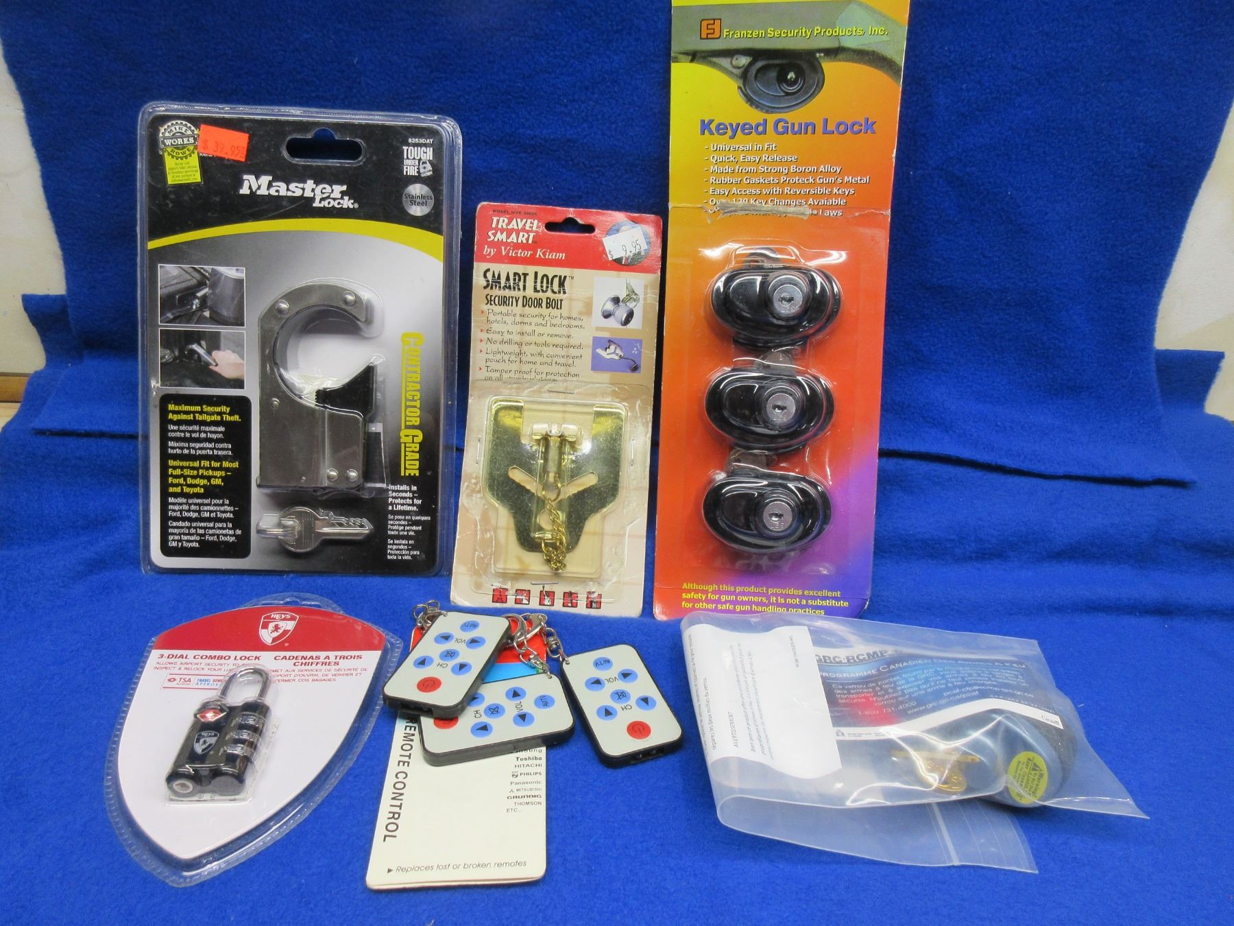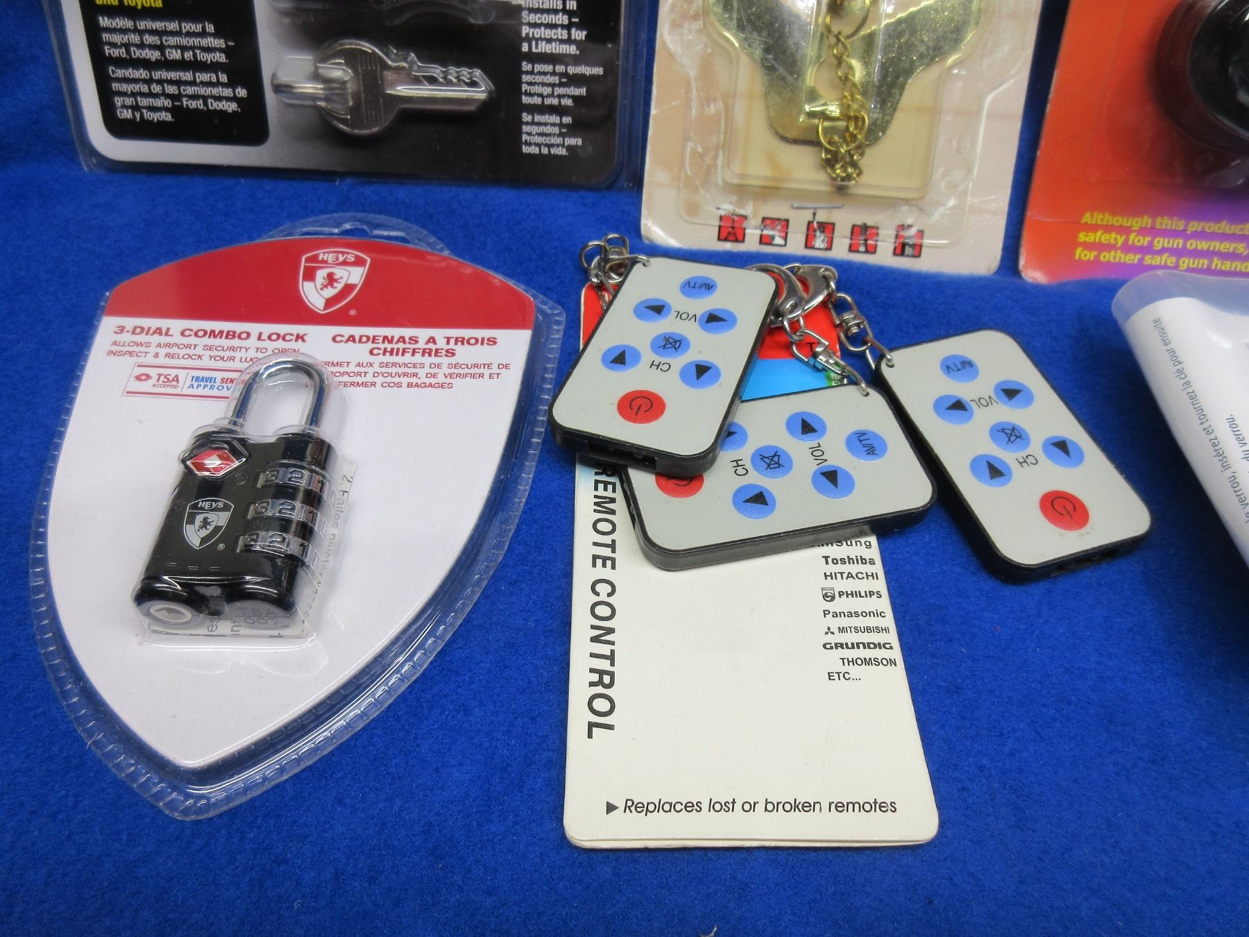 Lot of Misc Locks - 4 gun locks, tailgate lock, Heys combo lock, travel door lock, 3 - Universal Remote Controls