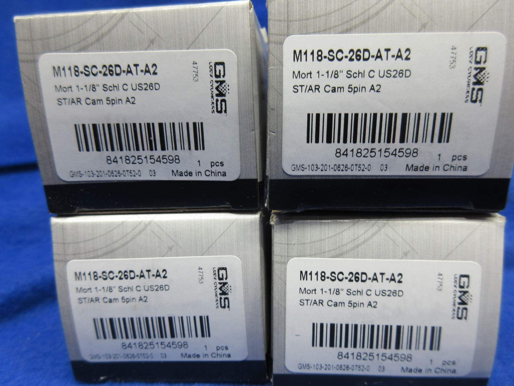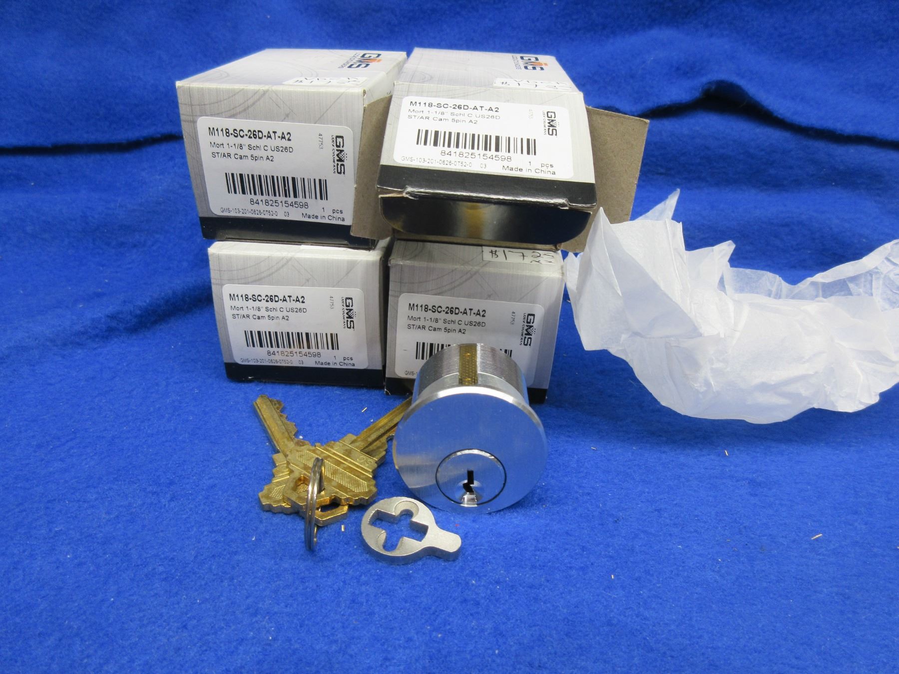 NEW - 4 GMS 1 1/8" Mortise Cylinders in Schlage C Keyway US26D