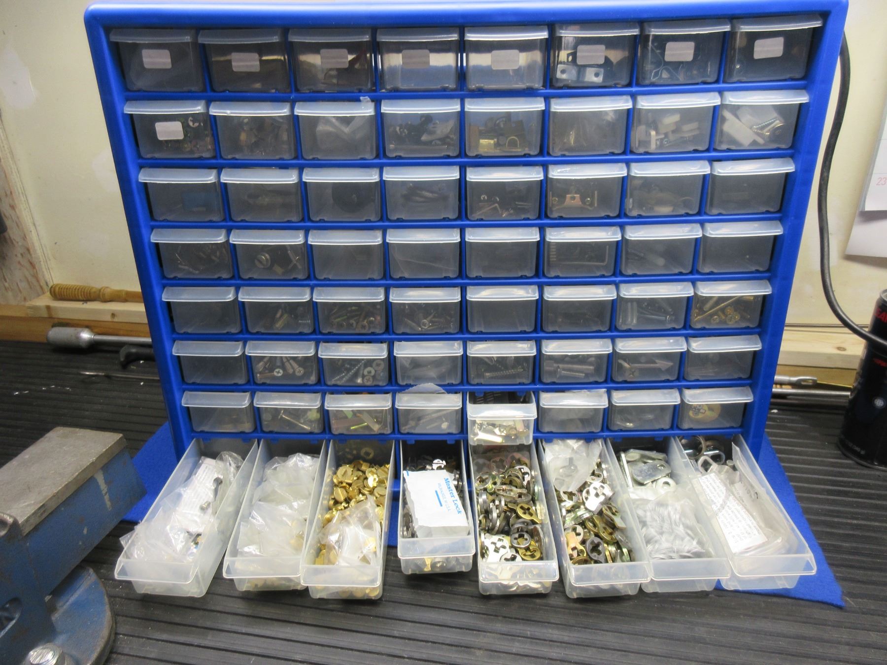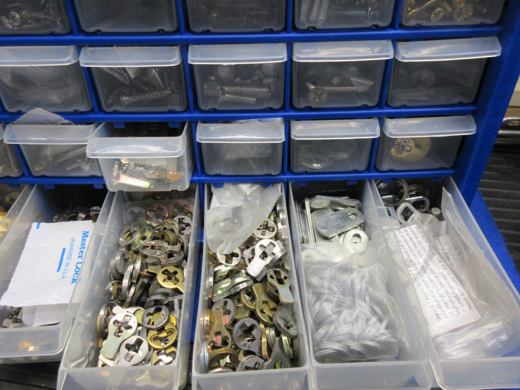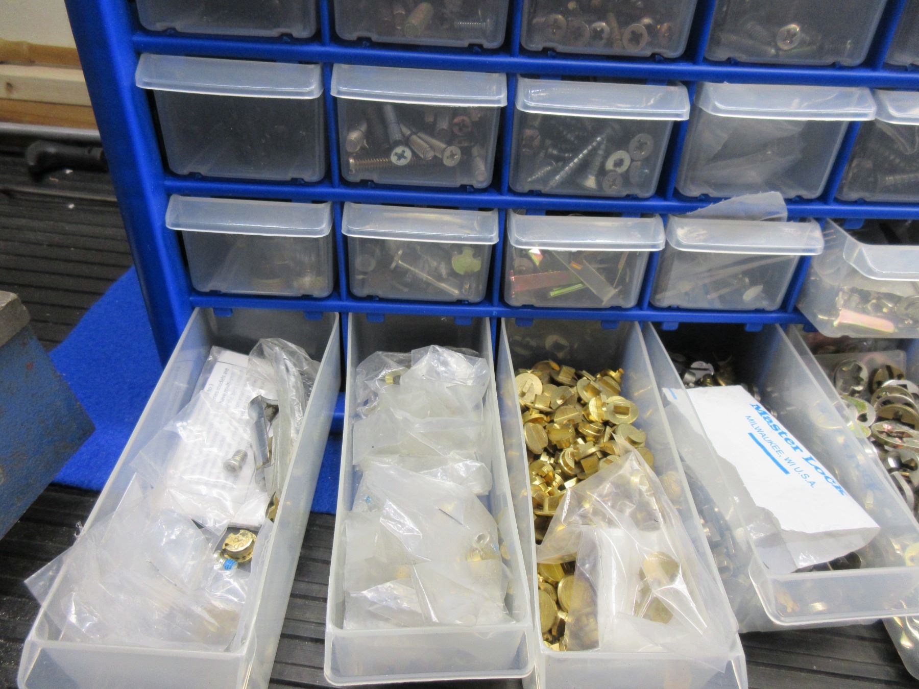 Parts Bin with Many Lock Parts, Screws and Other Items