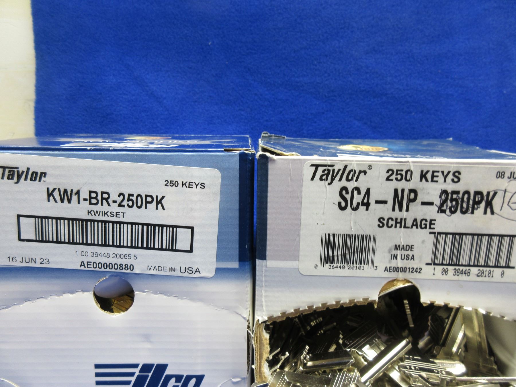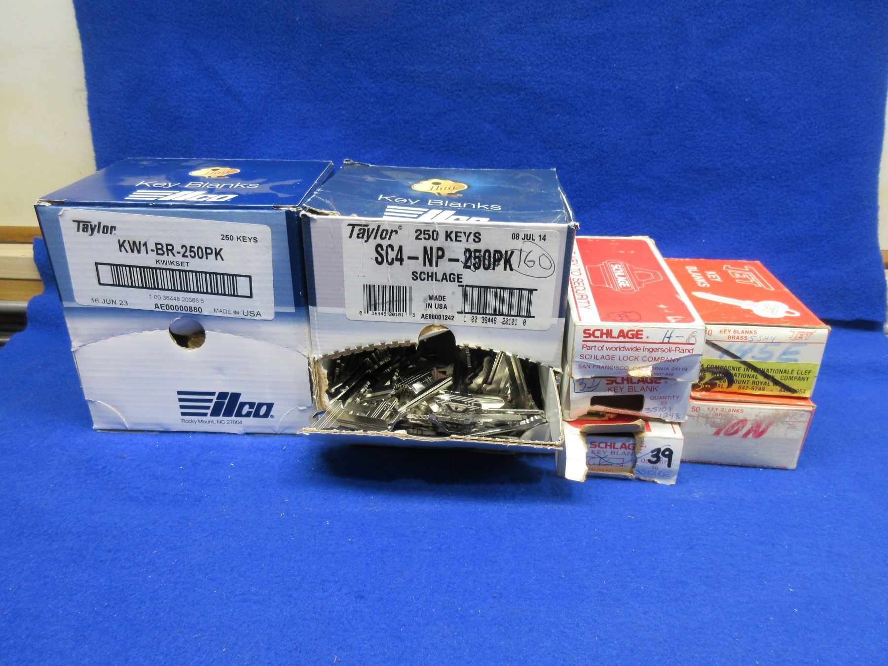 Lot of 555 Key Blanks - 250-KW1-BR, 160-SC4-NP, 15-SC8, 48-101ON, 11-H-6, 32-1248, 39-CE-6