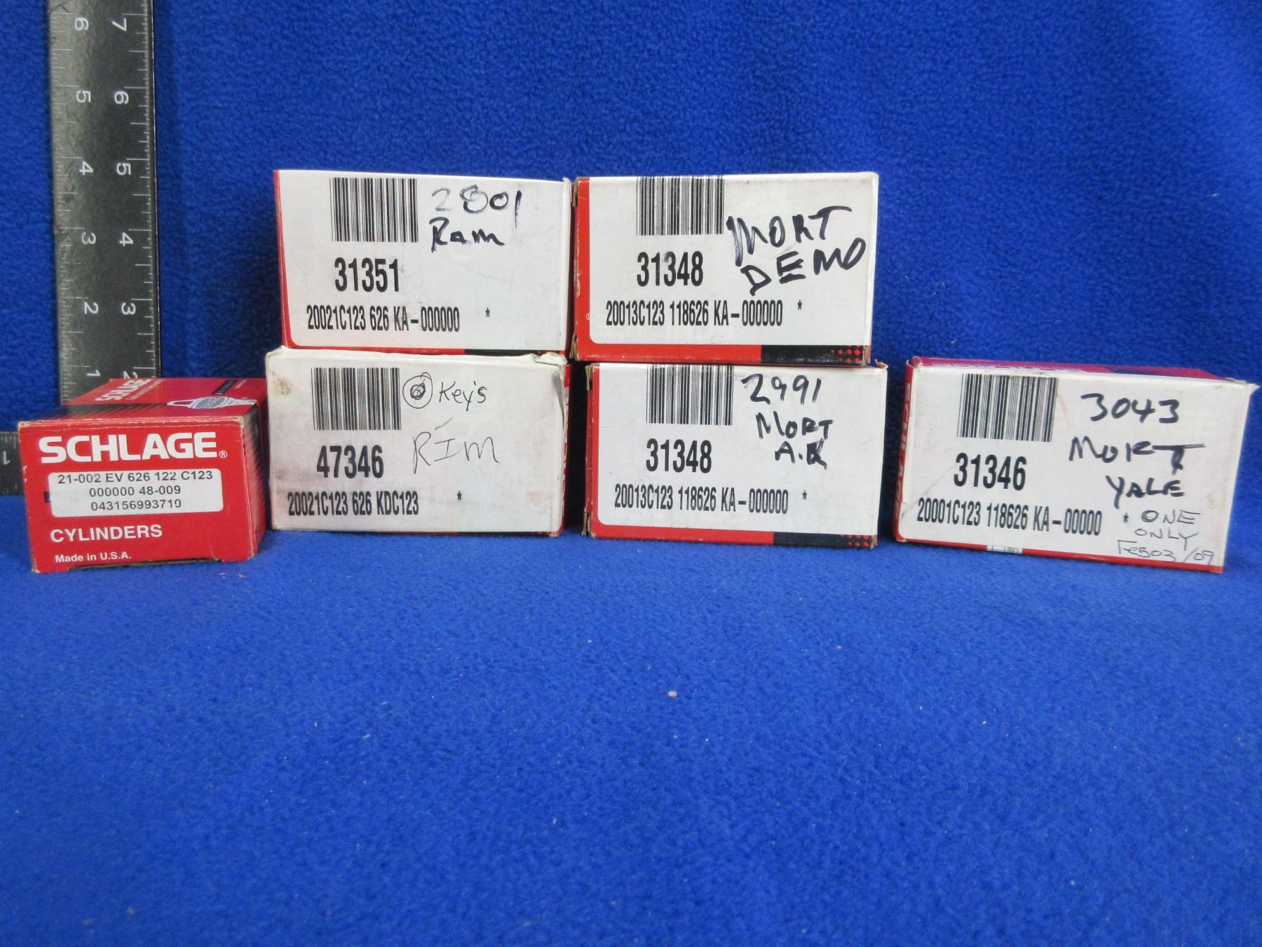 NEW - 6 Schlage Cylinders - 47346, 31346, 31351, 2@31348, 21-002 EV 626 122 C123