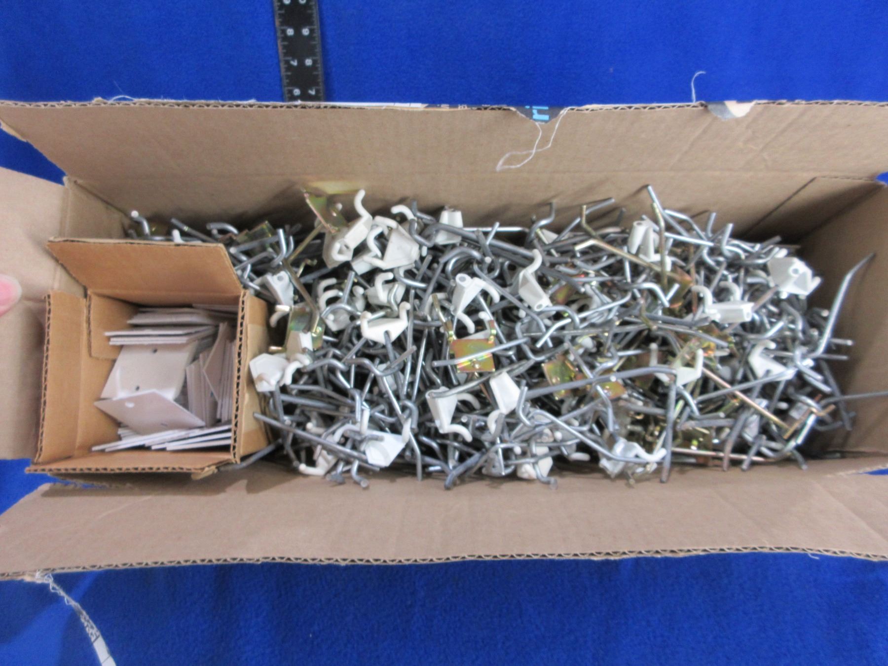 Box of Peg Board Hooks with ID Cards