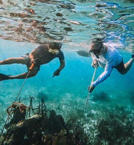 Enjoy all-inclusive reef fishing for wahoo, mahi-mahi, tuna, kingfish and giant barracudas. Bottom fish for huge snappers, groupers and amberjacks. Fly-fish or spin cast the surrounding flats for bonefish, tarpon and permit. Or you can spearfish for lobster (seasonal) and the invasive lionfish (year-round). Free dive for conch (seasonal). Snorkel the surrounding reef, and experience an array of exotic species. Scuba divers can hunt the invasive lionfish, and witness the diverse marine life of the second largest barrier reef in the world. For a small additional fee guests can troll the outer reef for pelagic species such as blue marlin & sailfish.