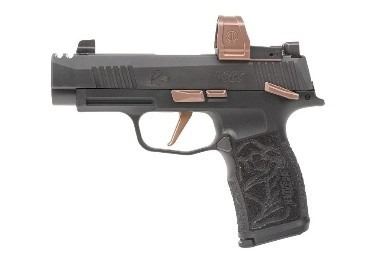 ROSE P365 kit including a special edition P365-XL COMP ROSE pistol chambered in 9MMand includes a custom ROSE Vaultek safe, and instant access to a complete step-by-step video training series with Lena Miculek that is supported by an online community to encourage, inspire, and grow female shooters to become more confident and comfortable.