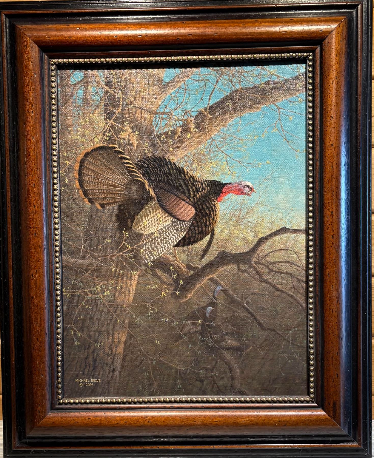 Framed original oil painting on canvas, titled First Gobble by Michael Sieve.
