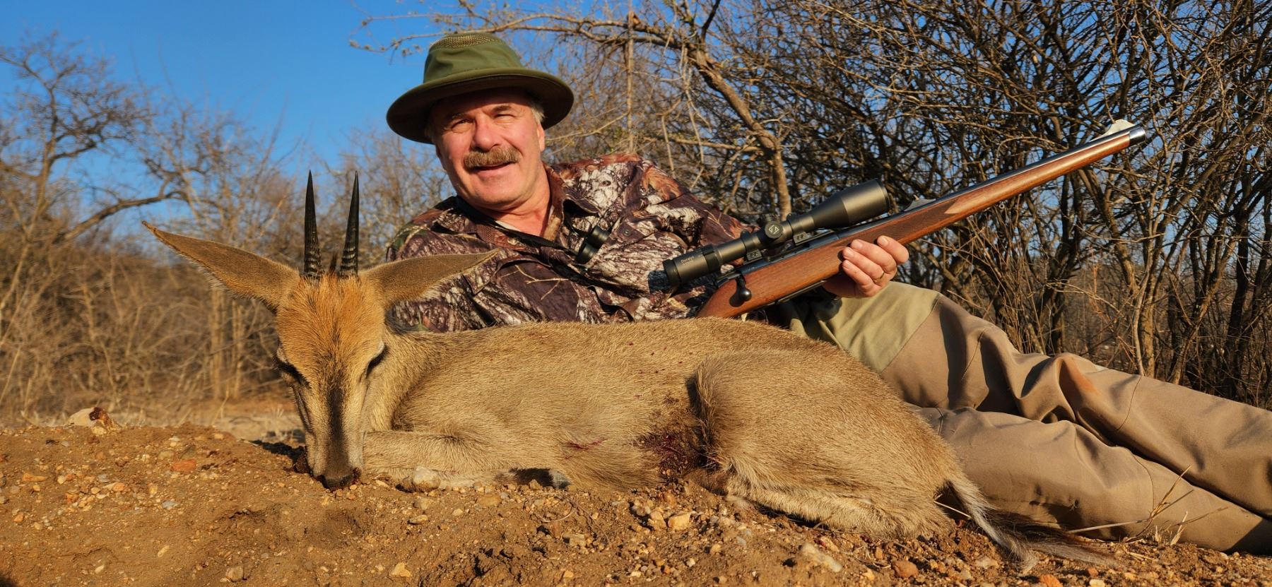 Includes trophy fees for 1x of each of the following sought after 'Tiny 10' species: Red duiker, Sharps grysbok, Grey duiker, Steenbok. Method of take is the hunters' choice. Additional game may be added during the safari and hunters pay the trophy fees according to the current price sheet; see outfitter for details.
