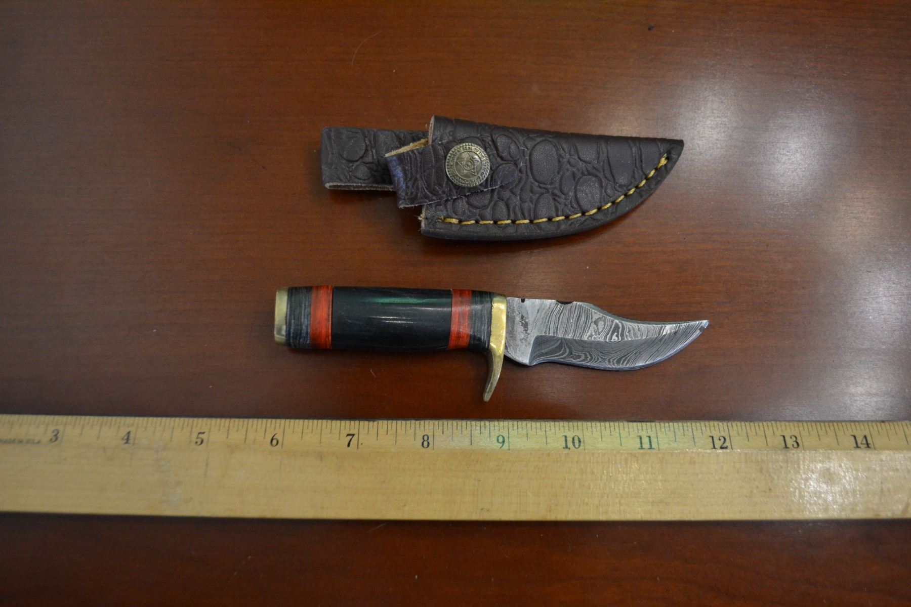 Lot 224 Hand Forged Damascus Steel Knife w/ Leather Sheath