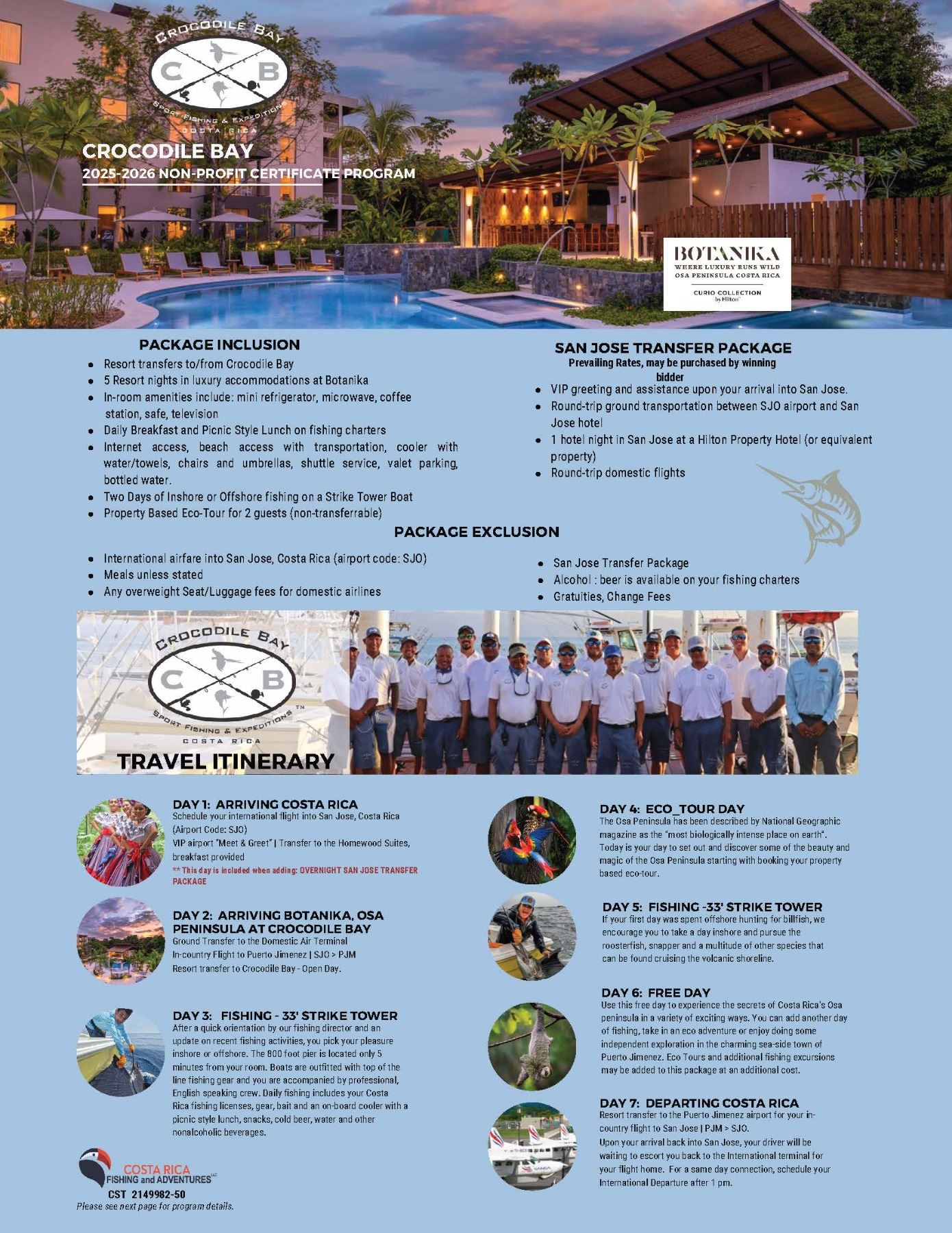 This package includes 2 full days of World Class Sport Fishing on a private fishing charter: 33' Strike Tower Boat. Also includes 1 Property Eco-tour for 2 guests. 2 Guests-1 Room Studio (double occupancy). Daily breakfast and Lunch, cooler on fishing days.