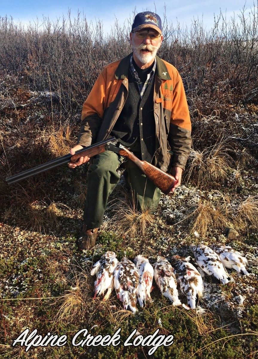 DIY Ptarmigan/Predator Hunting: Ptarmigan hunting at Alpine Creek Lodge is good anytime the season is open. Ptarmigan season is from Aug 10-February 15th. Alpine has a huge number of Willow Ptarmigan, with good numbers of the rarer White-Tailed Ptarmigan and Rock Ptarmigan.