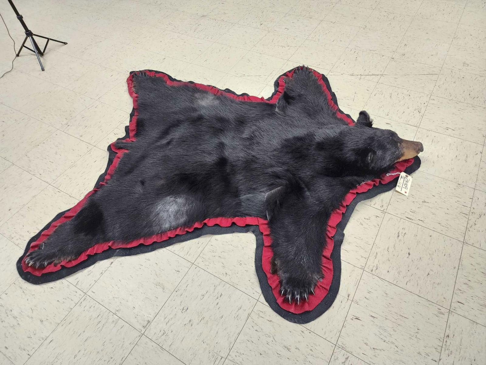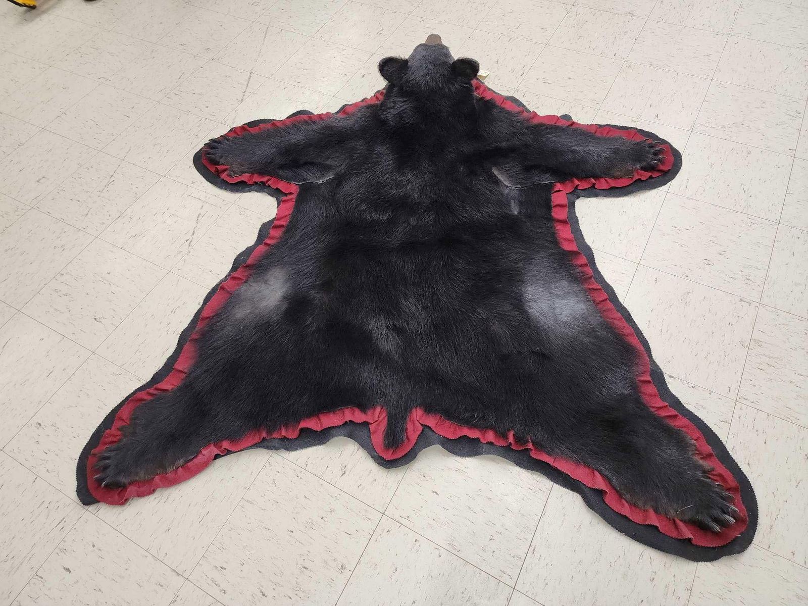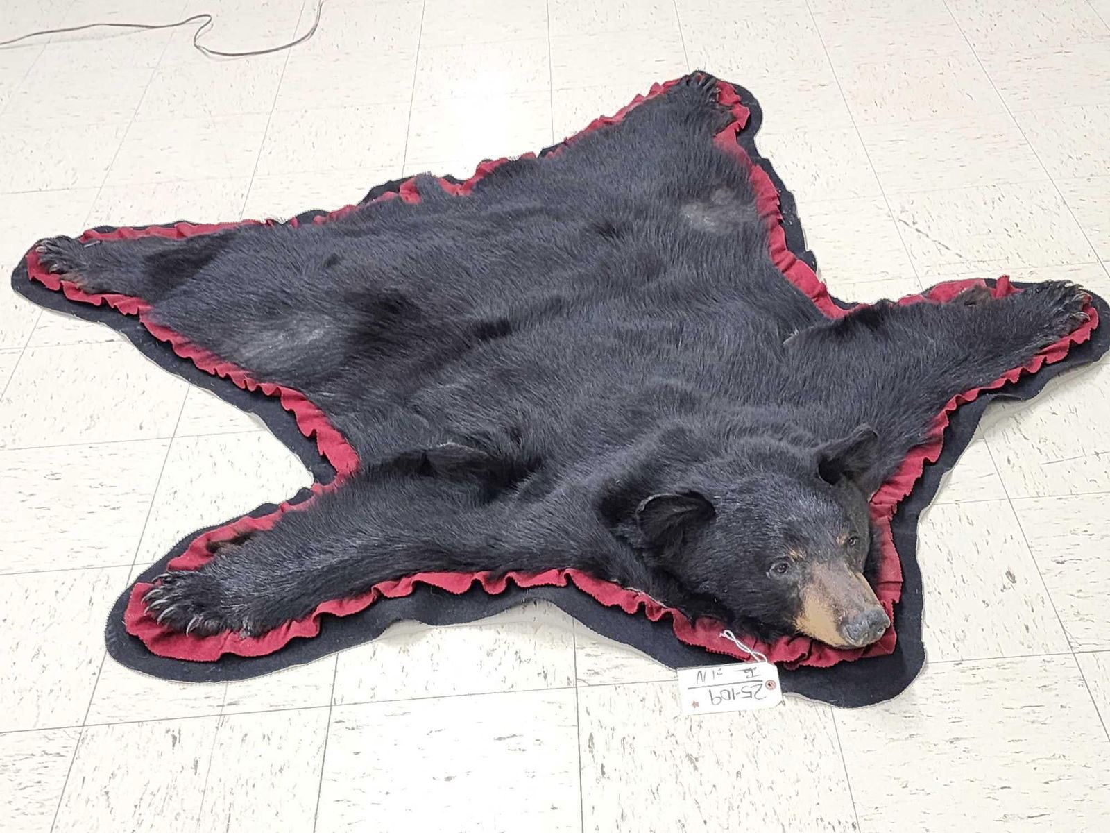 25.109 Slick hair claws intact double felt edges nice closed mouth rug stiffer tan overall dimensions about 71" long x 63" wide