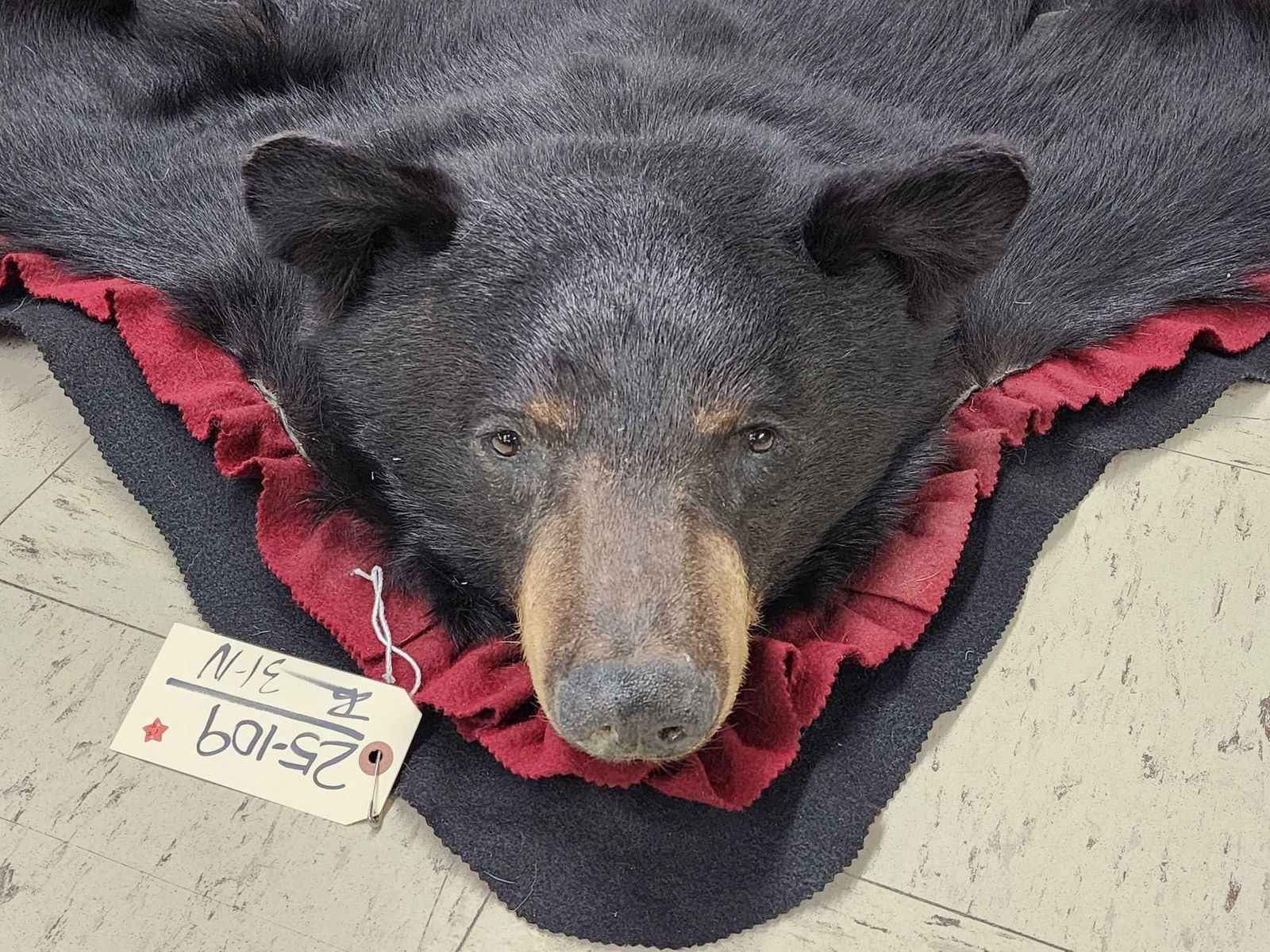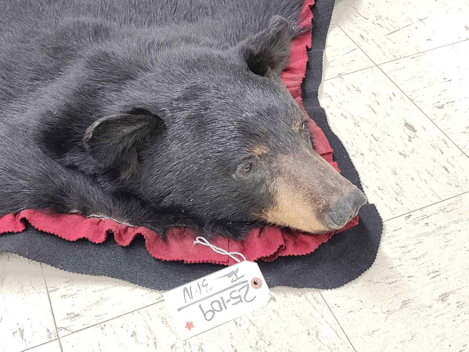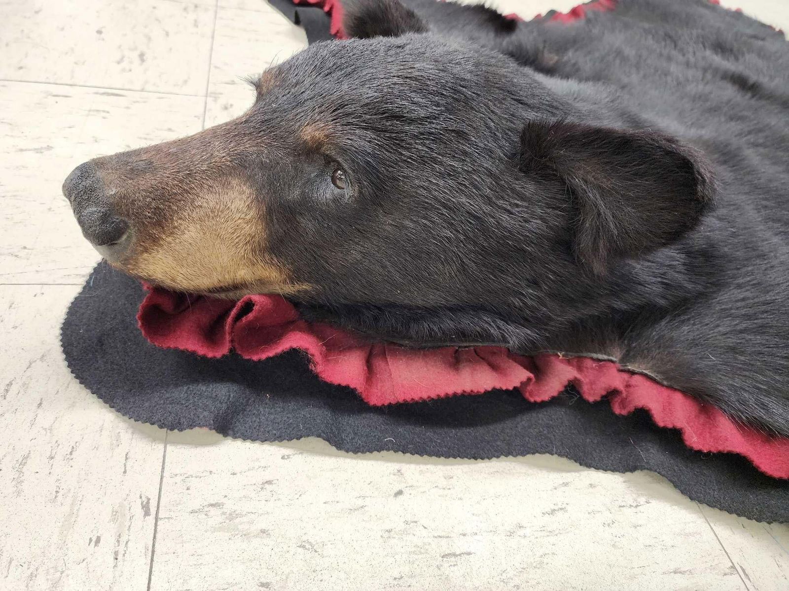 25.109 Slick hair claws intact double felt edges nice closed mouth rug stiffer tan overall dimensions about 71" long x 63" wide