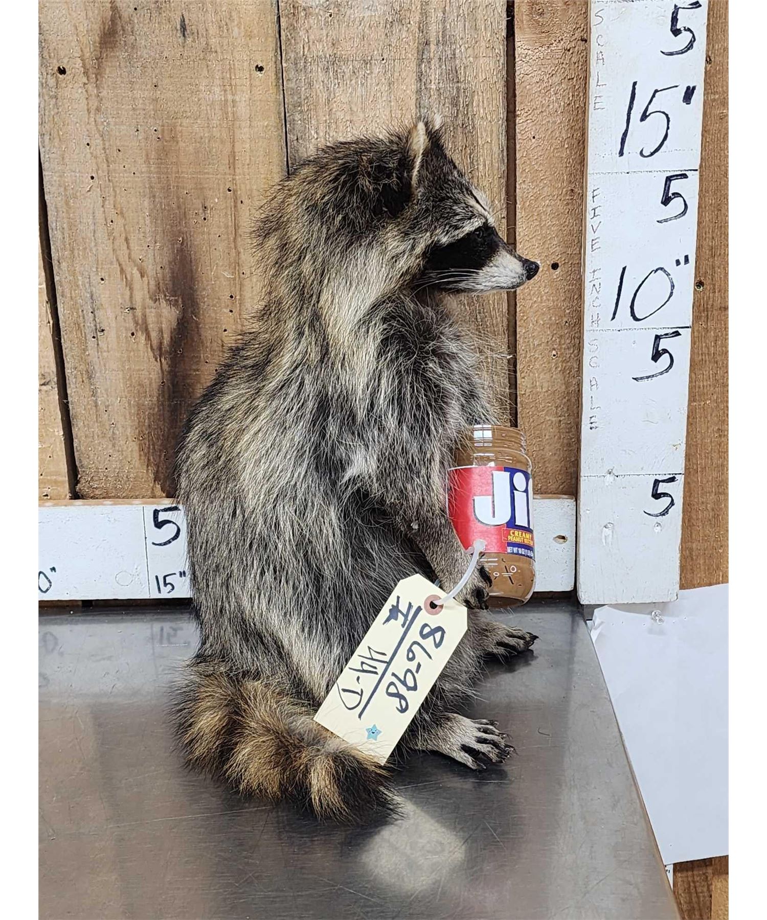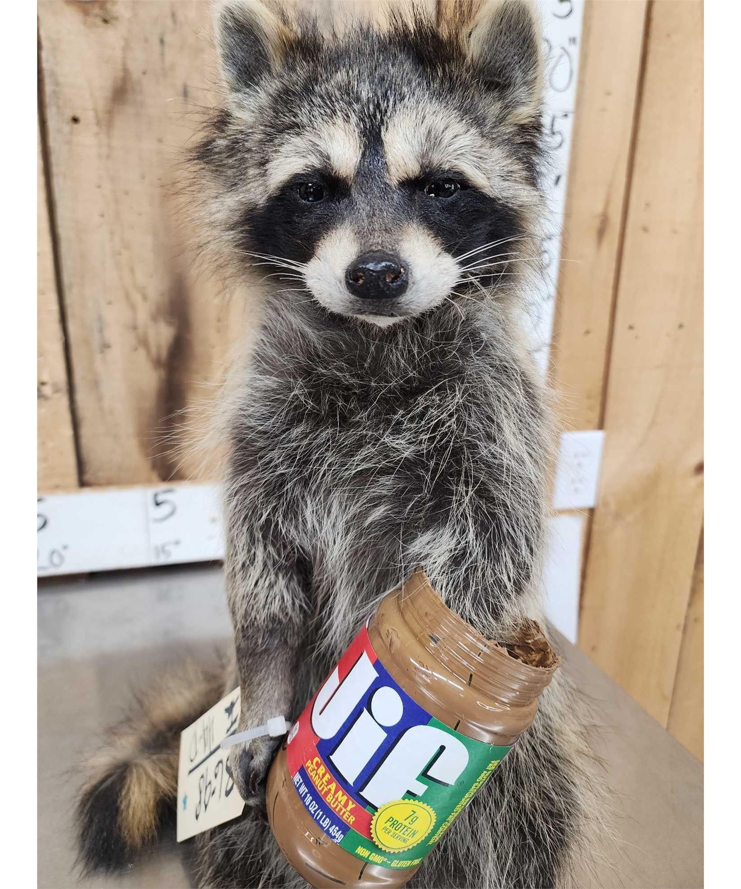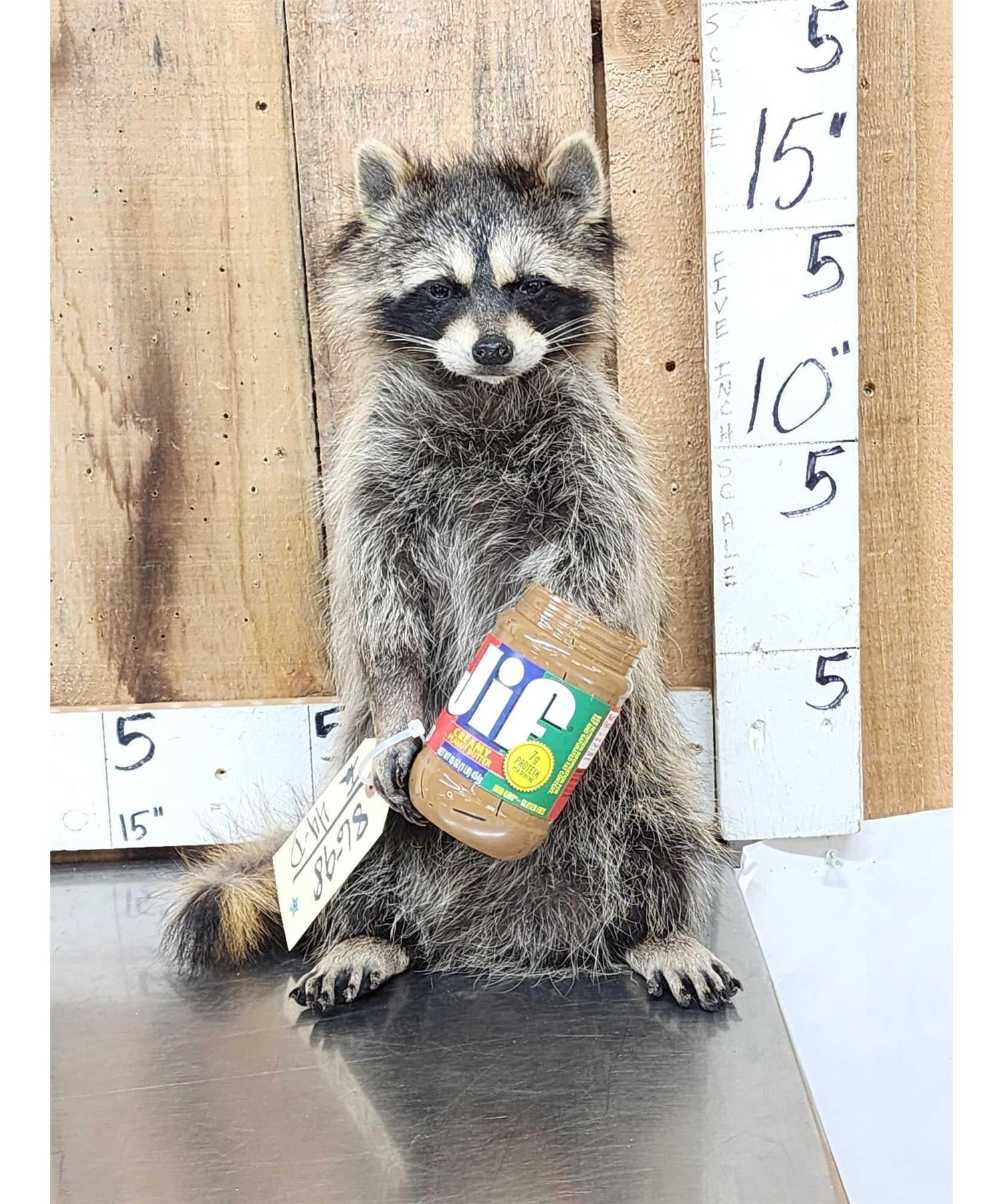 Lot 44D Raccoon Eating Peanut Butter Taxidermy Mount