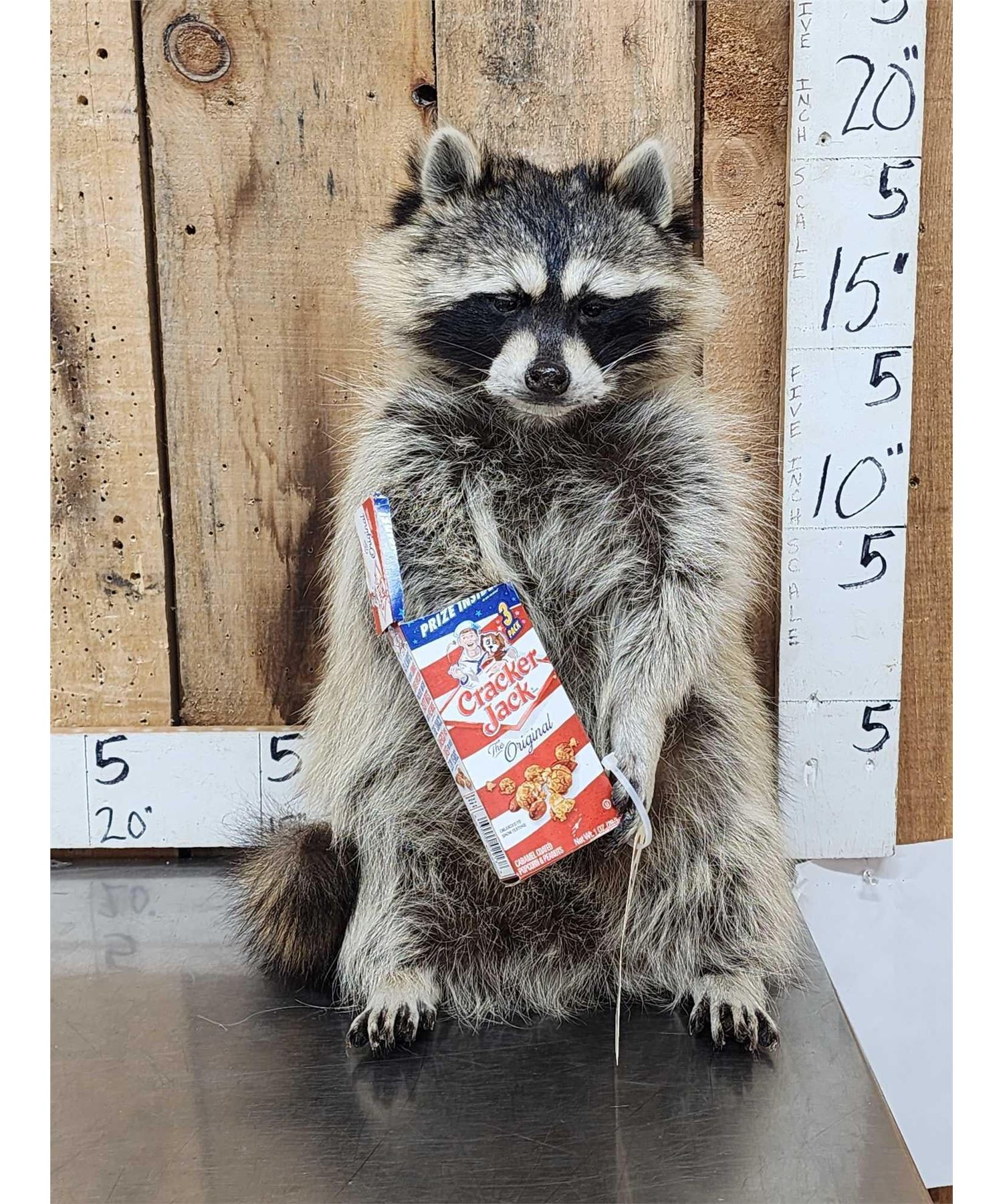 Lot 69D Raccoon Eating Cracker Jacks Taxidermy Mount