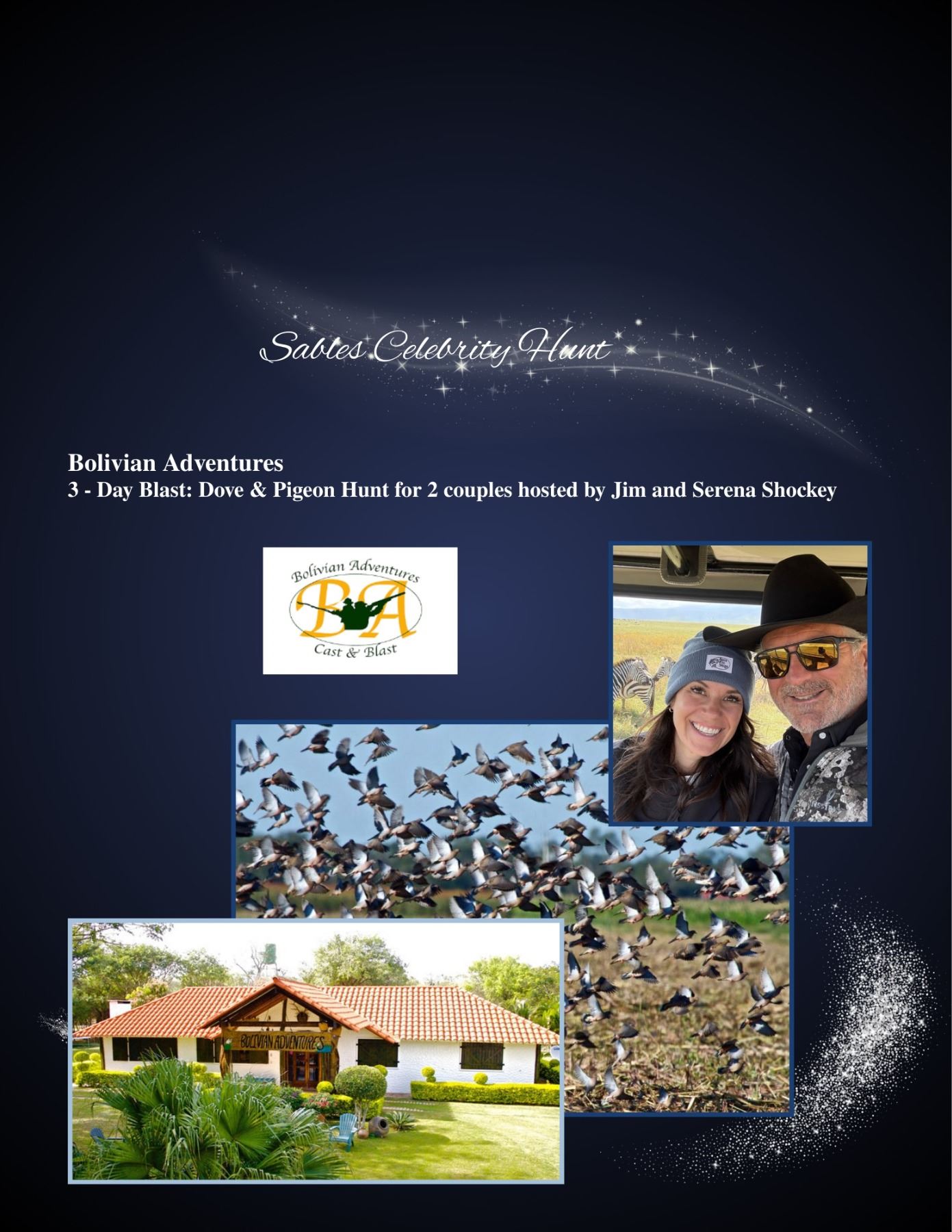 Sables Celebrity Hunt - 3- Day Dove & Pigeon Hunt for 2 couples Hosted by Jim and Serena Shockey
