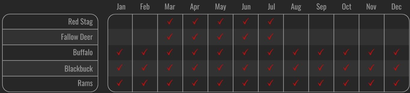 Guides and Season: Our season runs from March to August and all species can be taken during the entire season. We believe in human values, that’s why our professional guides have been with Catena's family since the beginning. All our PH’s are local and highly experienced.