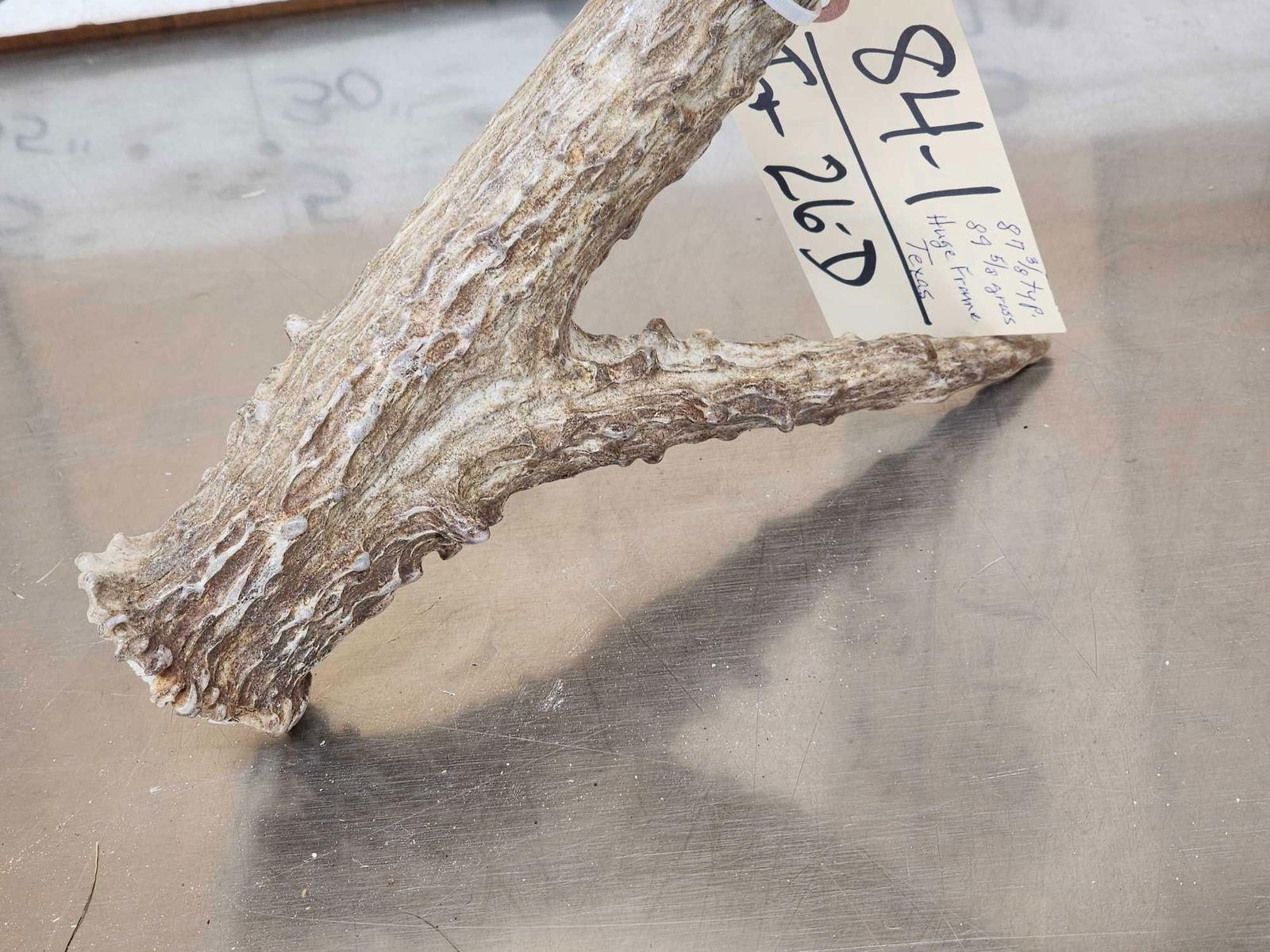 84.1 Scores 89 5/8" gross with a 87 3/8" typically 5 point frame !Awesome color heavy beading PRETTY shed BIG to hold weighs 3 Lbs 13 Oz Texas