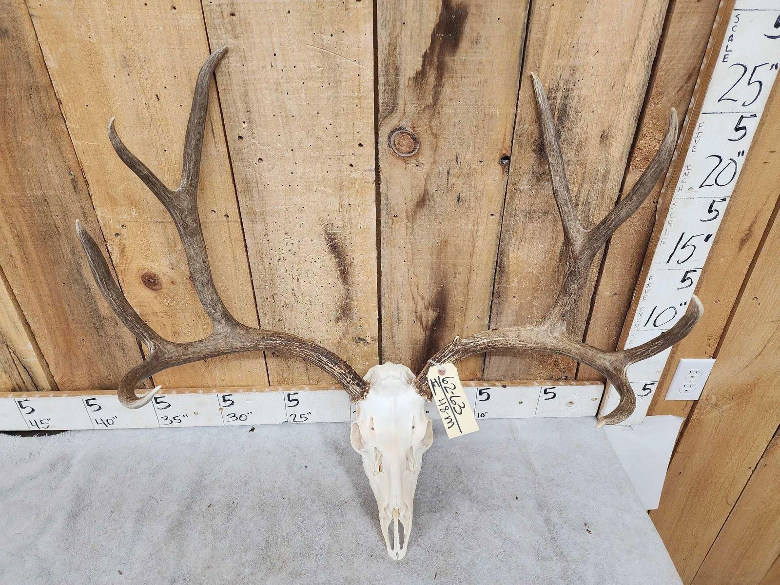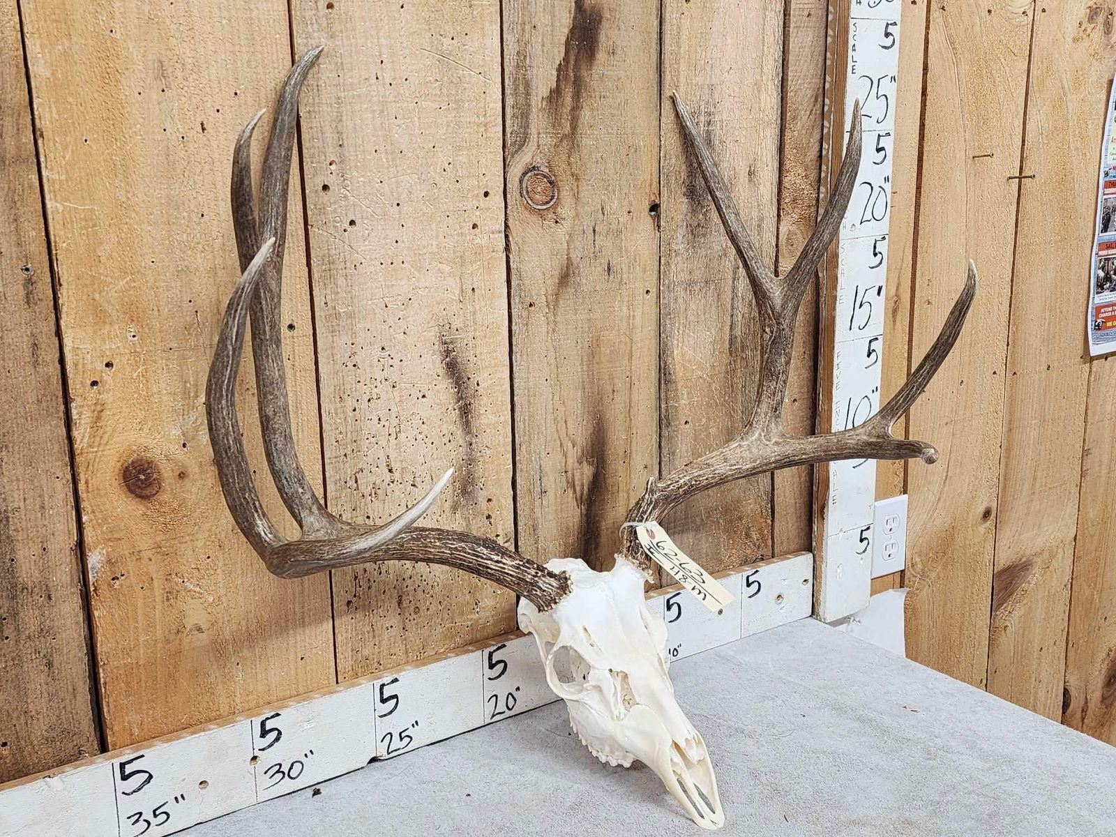 62.63 Pretty piece over 26 1/2" inside spread 30" outside spread awesome color on professionally done beetle cleaned Skull turbinates intact