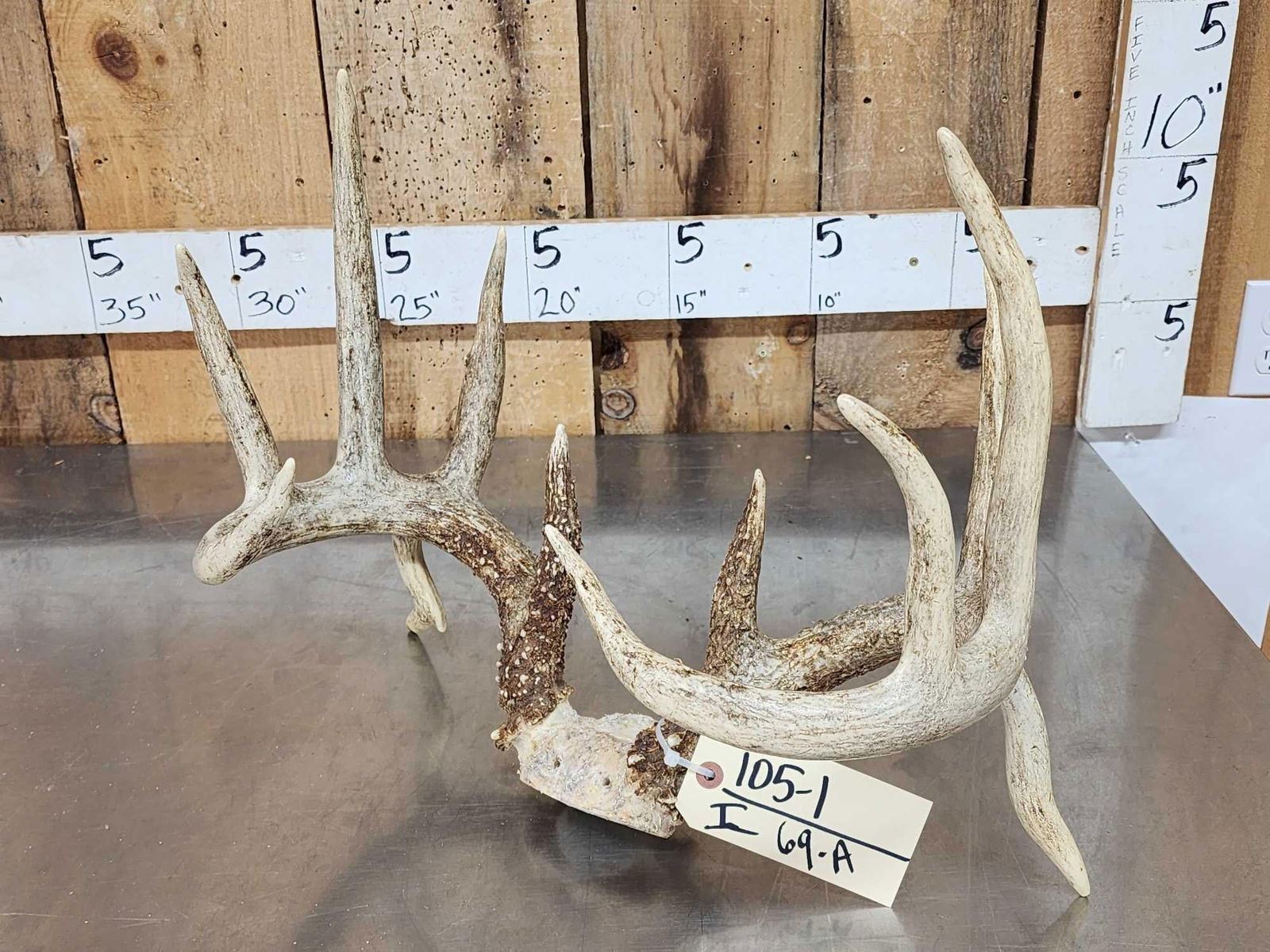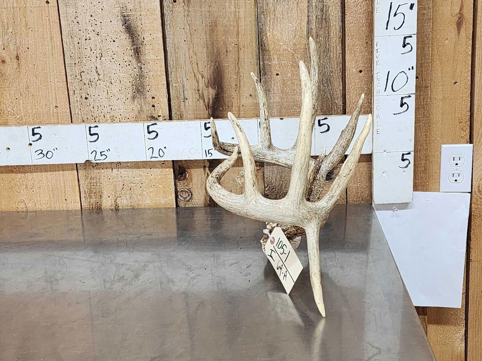 Lot 69A Wild 5x5 Double Droptine Whitetail Antlers On Skull Plate