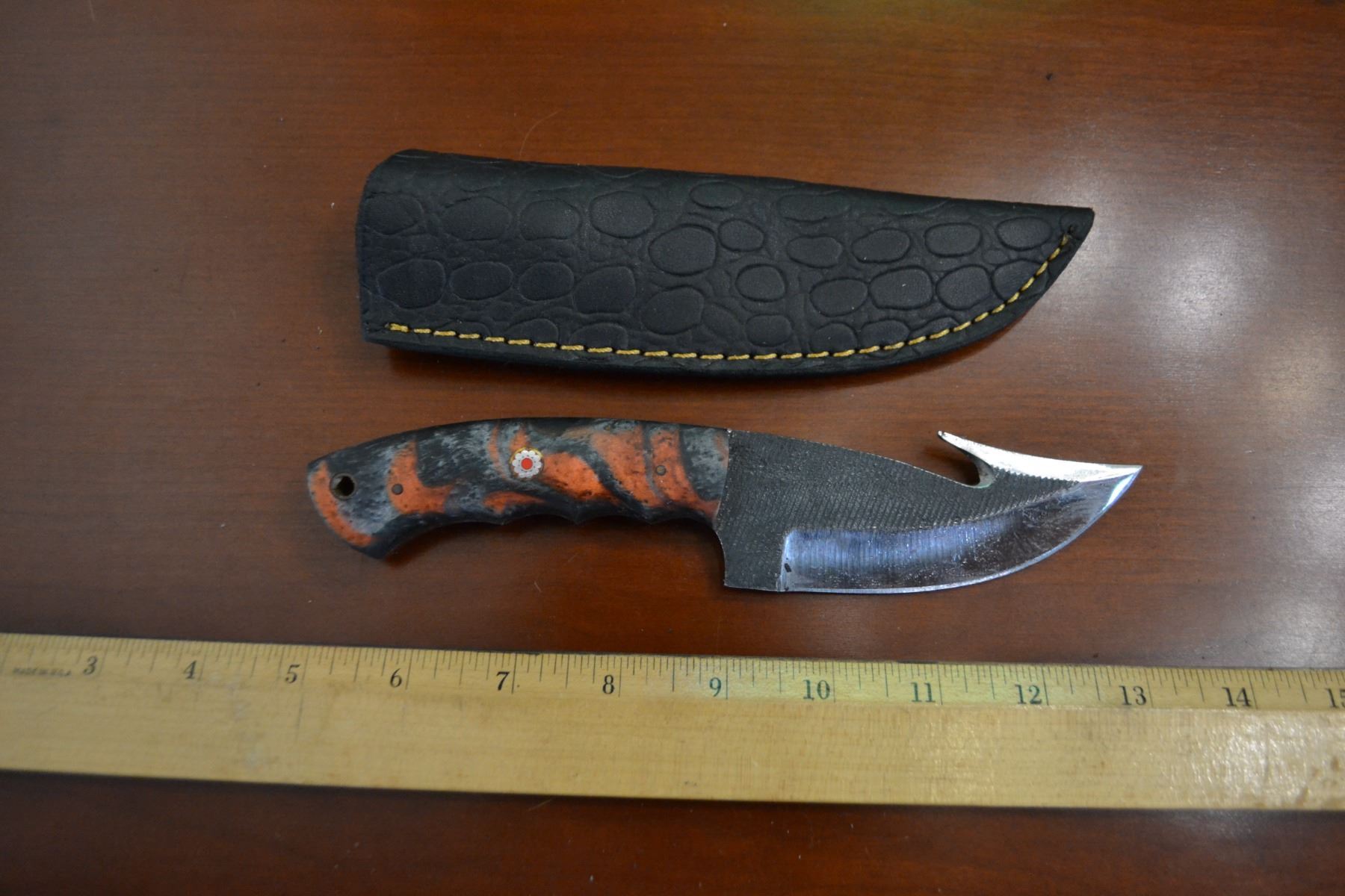 Lot 228 Hand Forged Steel Knife w/ Leather Sheath