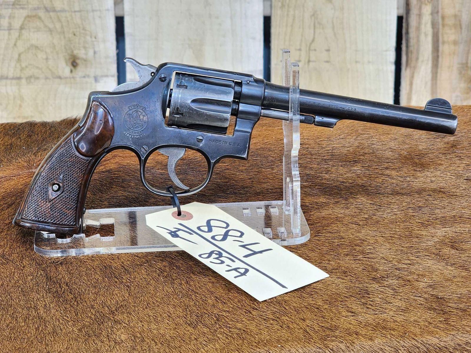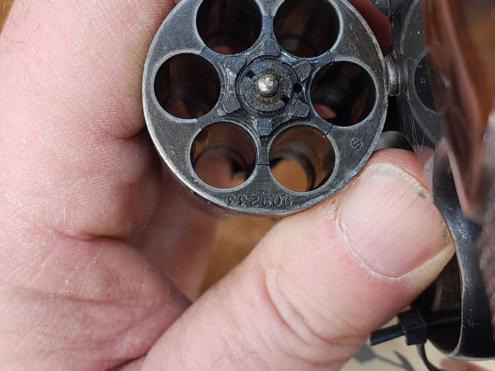 88.4 Solid vintage gun 6" barrel shiny bore good rifling crisp double action locks up fairly tight SN S909233